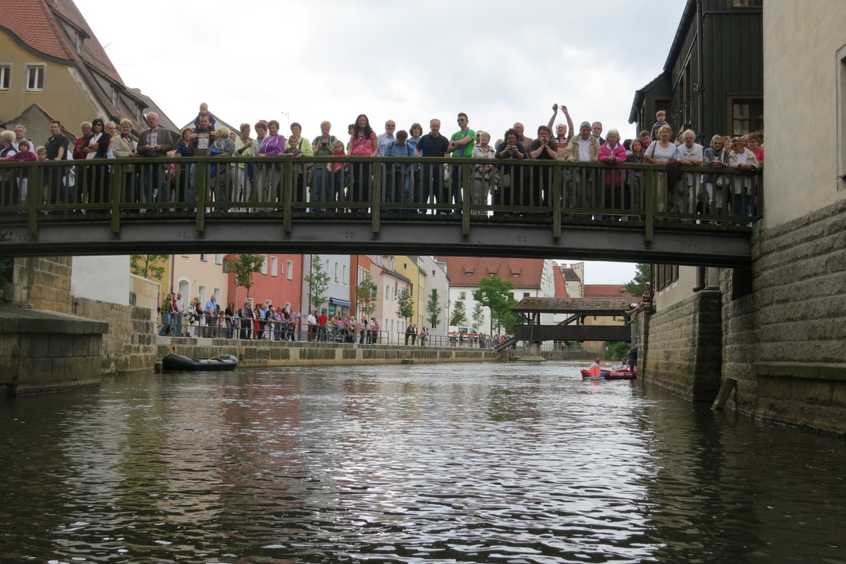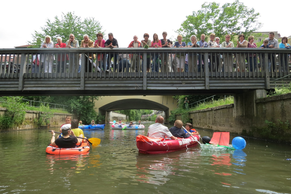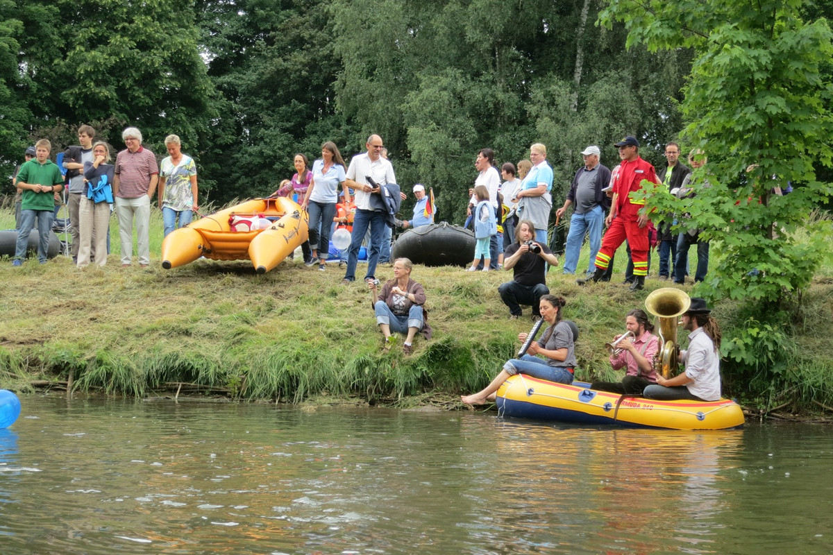 Zum sechsten mal trafen sich die Freunde des aufgeblasenen Schwimmgerätes an der Vils in Amberg und paddelten begleitet von Blasmusik in den Booten (möglichst langsam) gen Luftmuseum.
