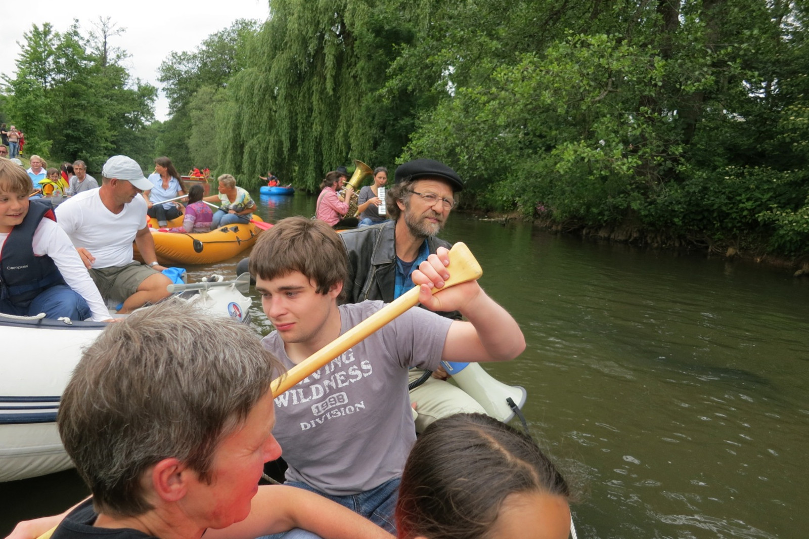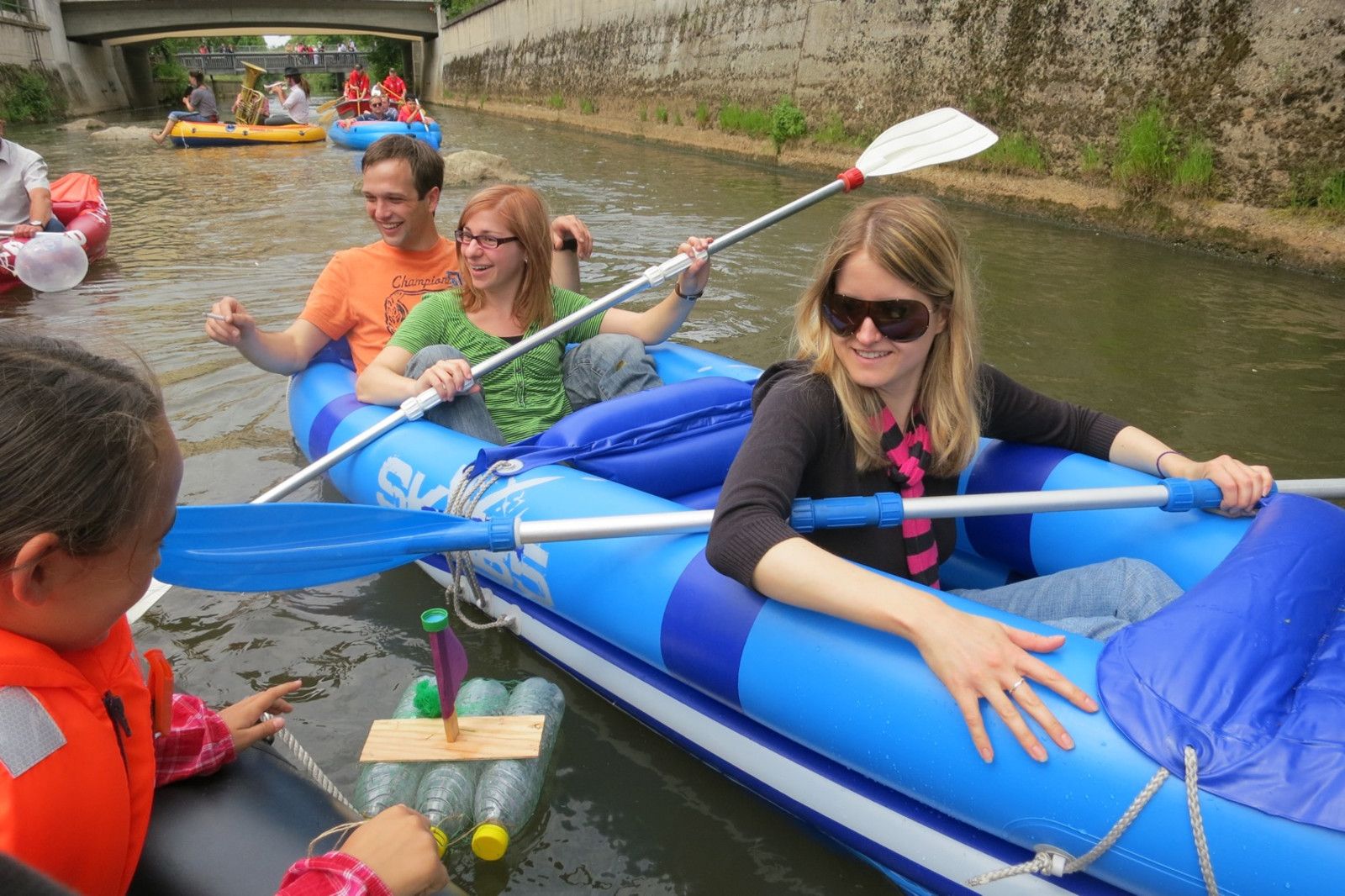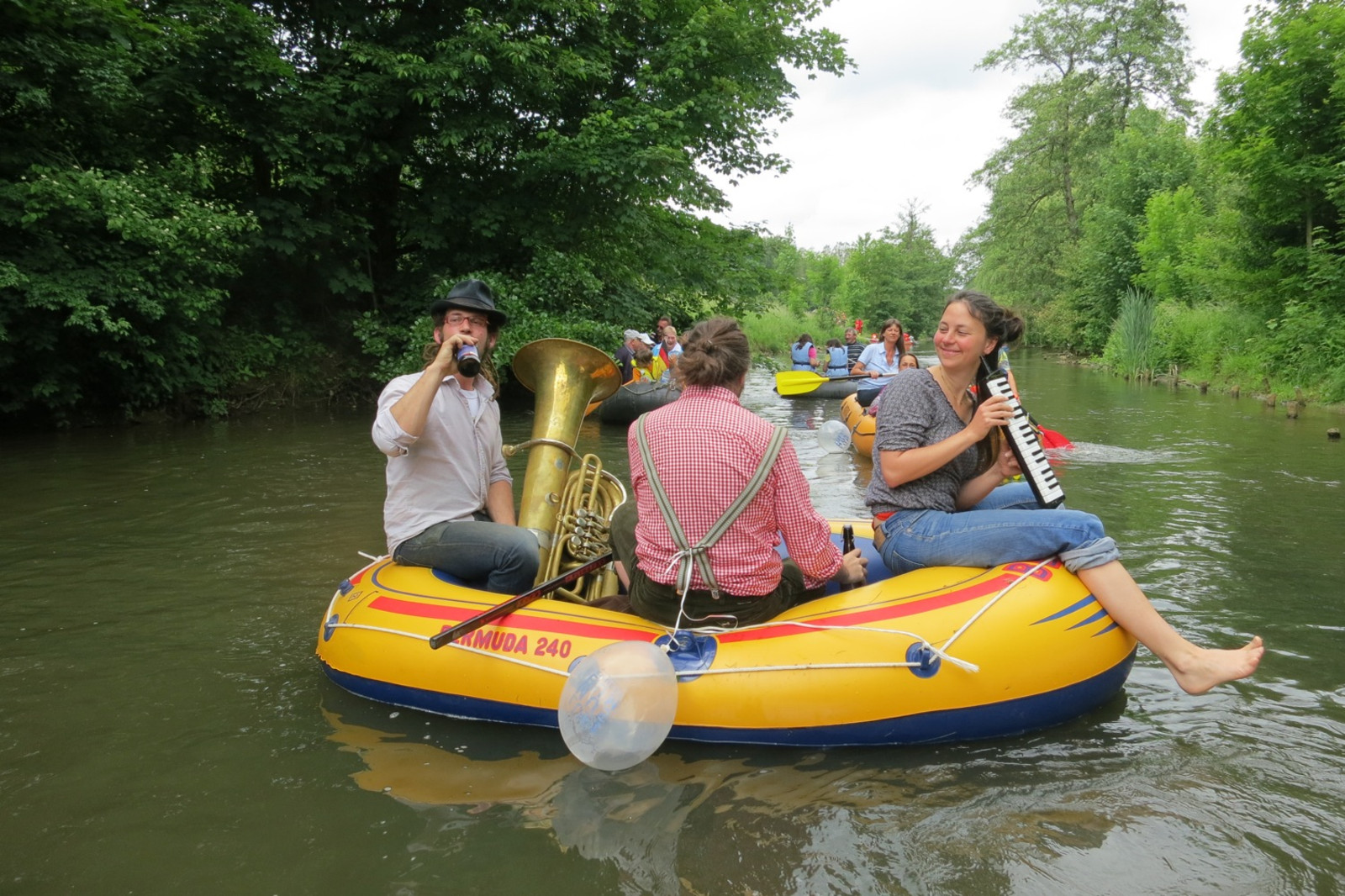 Zum sechsten mal trafen sich die Freunde des aufgeblasenen Schwimmgerätes an der Vils in Amberg und paddelten begleitet von Blasmusik in den Booten (möglichst langsam) gen Luftmuseum.