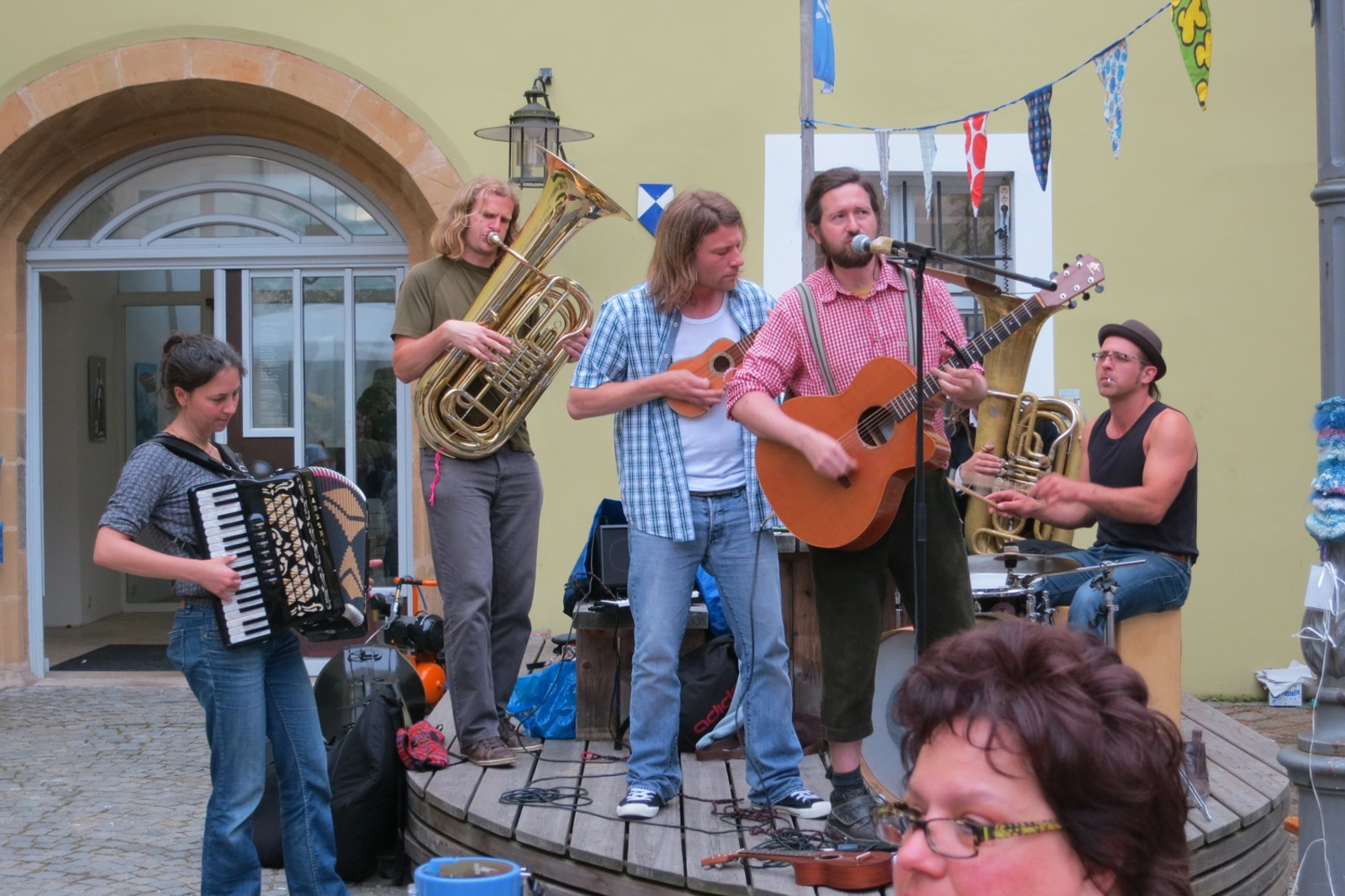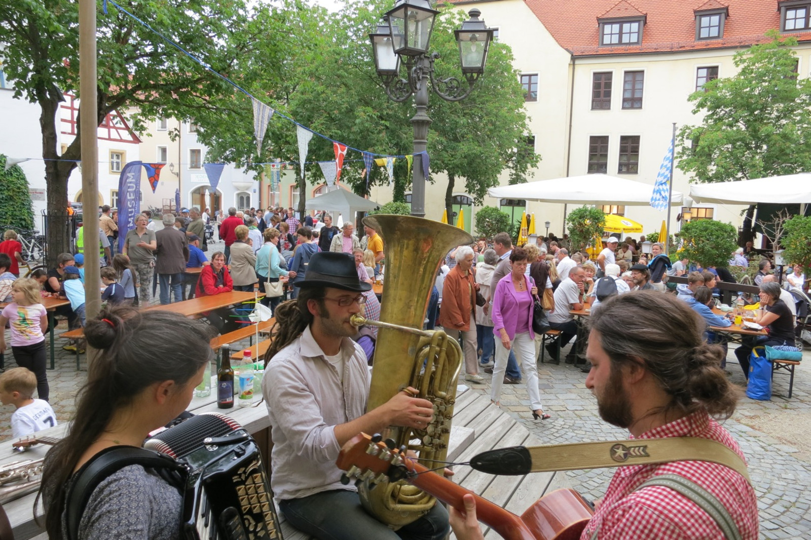 - In den Booten und auf den Brücken gibt es junge Blasmusik mit