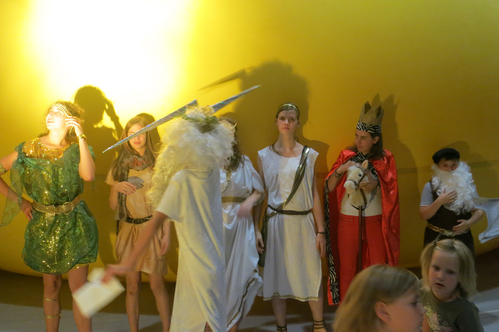 Etsdorfer Kinder schlüpfen in die Rollen von Göttern und antiken Figuren und tragen selbst formulierte Texte zur Person vor.