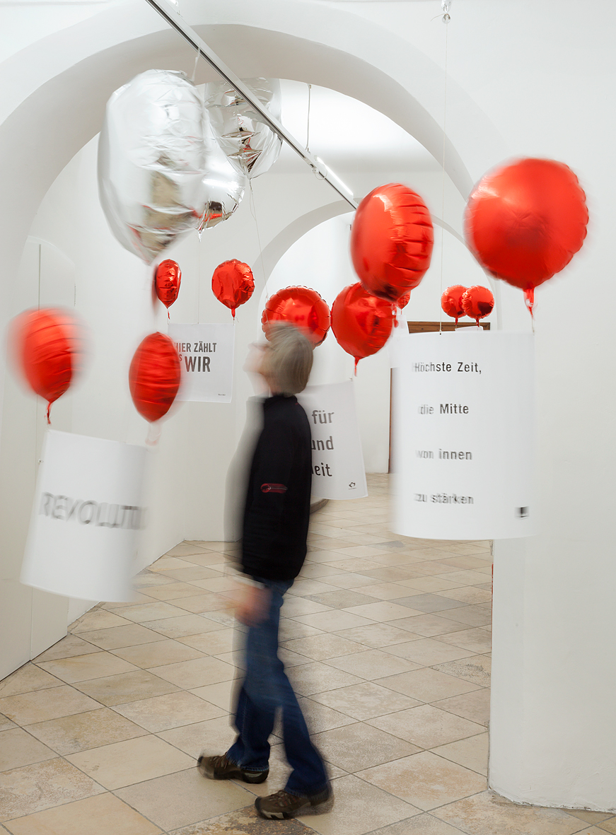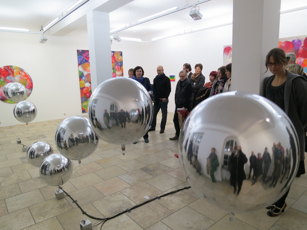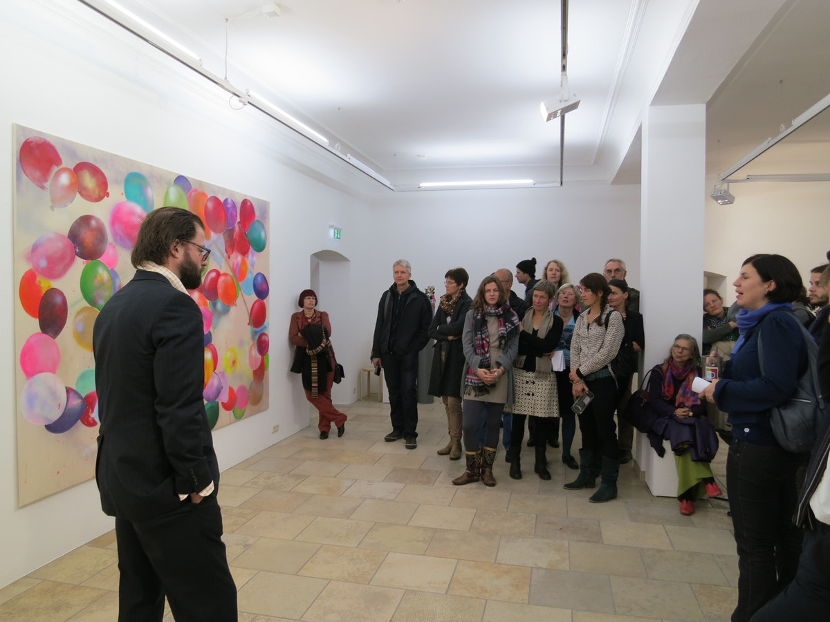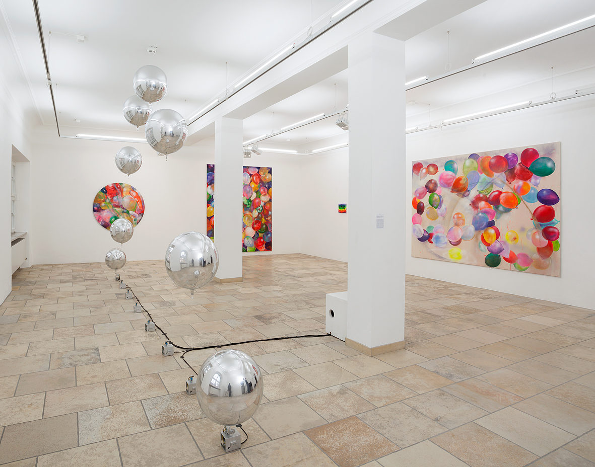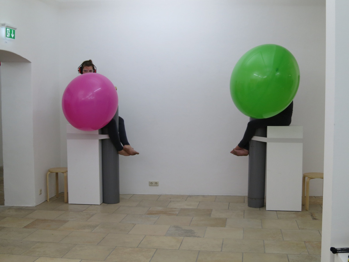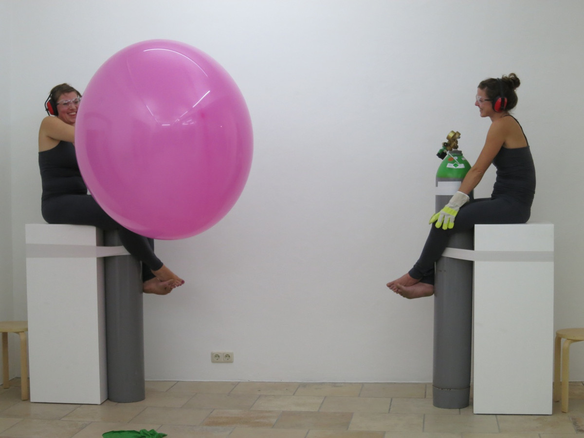 Bunt und poppig – Kindergeburtstag, Jahrmarkt und Nena –, das herkömmliche Feld des Luftballons scheint die Populär-und Entertainment-Kultur zu sein. Dabei wird oft übersehen, dass seit den 1960er Jahren gerade die bildenden Künstler den Luftballon als Form, Material oder Akteur entdeckt haben. Die Ausstellung „Pop! Platz! Pfff...“ untersucht den Luftballon als künstlerisches Material, seine Eigenschaften und Verwendungsmöglichkeiten als Form, als Hülle, als Platzhalter, als Experiment, als Versuchsanordnung, als Informationsträger, als Gegenüber und als Utopie. Füllen, Platzen, Verpuffen! Mehrere zeitgenössische Positionen benutzen und thematisieren den Luftballon, indem sie die räumlichen und physikalischen Grenzen sowie das kommunikative, narrative und fiktionale Potential dieses künstlerischen Materials ausloten. Einige der Arbeiten, deren Bandbreite von Video, Malerei, Installation, Bildhauerei bis zu kinetischen Objekten und performativen Aktionen reichen, entstehen speziell für die Ausstellung.