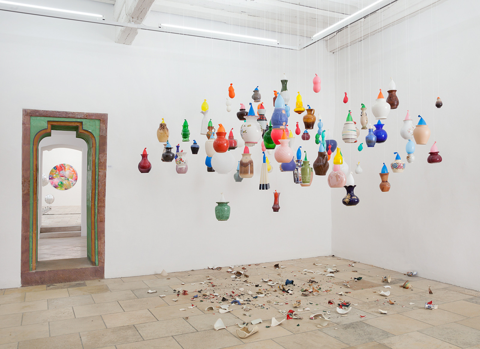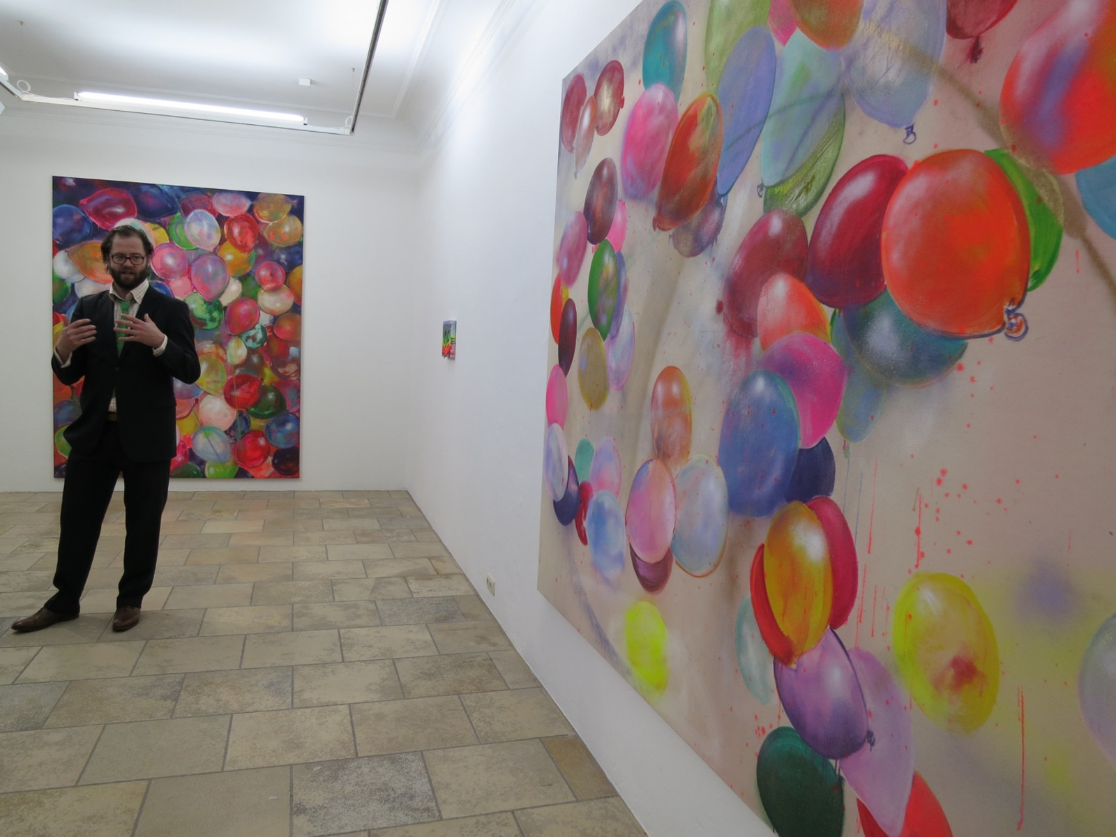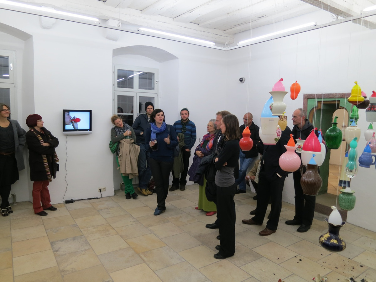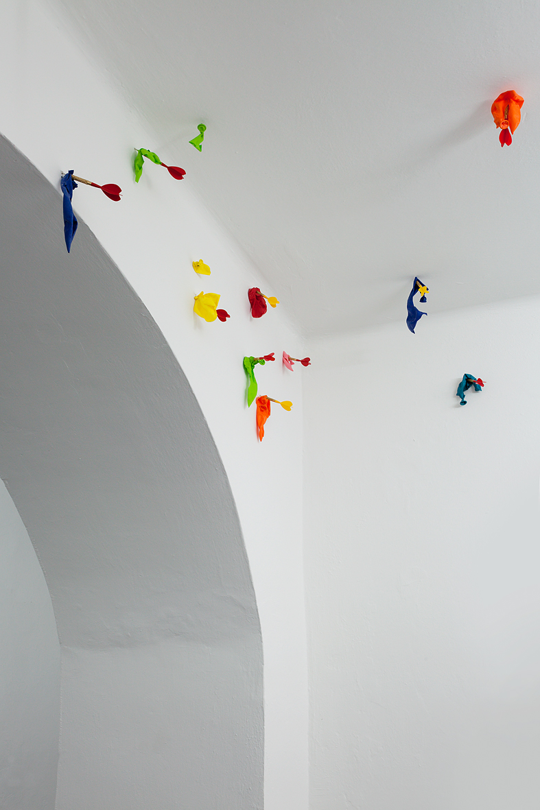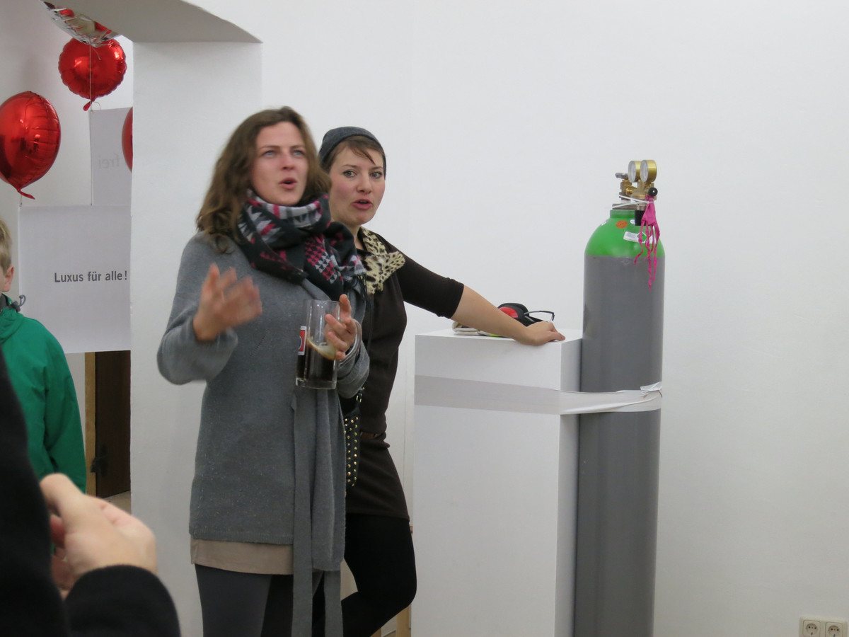 Bunt und poppig – Kindergeburtstag, Jahrmarkt und Nena –, das herkömmliche Feld des Luftballons scheint die Populär-und Entertainment-Kultur zu sein. Dabei wird oft übersehen, dass seit den 1960er Jahren gerade die bildenden Künstler den Luftballon als Form, Material oder Akteur entdeckt haben. Die Ausstellung „Pop! Platz! Pfff...“ untersucht den Luftballon als künstlerisches Material, seine Eigenschaften und Verwendungsmöglichkeiten als Form, als Hülle, als Platzhalter, als Experiment, als Versuchsanordnung, als Informationsträger, als Gegenüber und als Utopie. Füllen, Platzen, Verpuffen! Mehrere zeitgenössische Positionen benutzen und thematisieren den Luftballon, indem sie die räumlichen und physikalischen Grenzen sowie das kommunikative, narrative und fiktionale Potential dieses künstlerischen Materials ausloten. Einige der Arbeiten, deren Bandbreite von Video, Malerei, Installation, Bildhauerei bis zu kinetischen Objekten und performativen Aktionen reichen, entstehen speziell für die Ausstellung.
