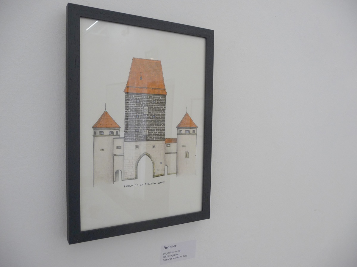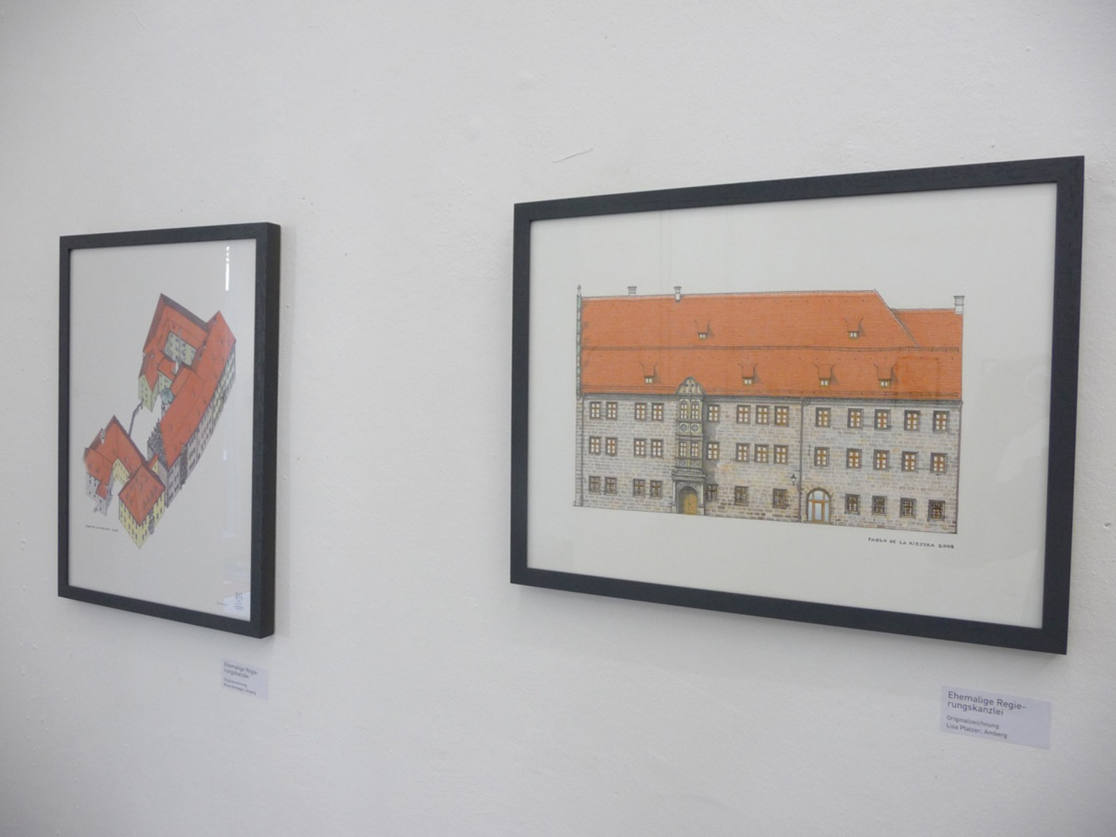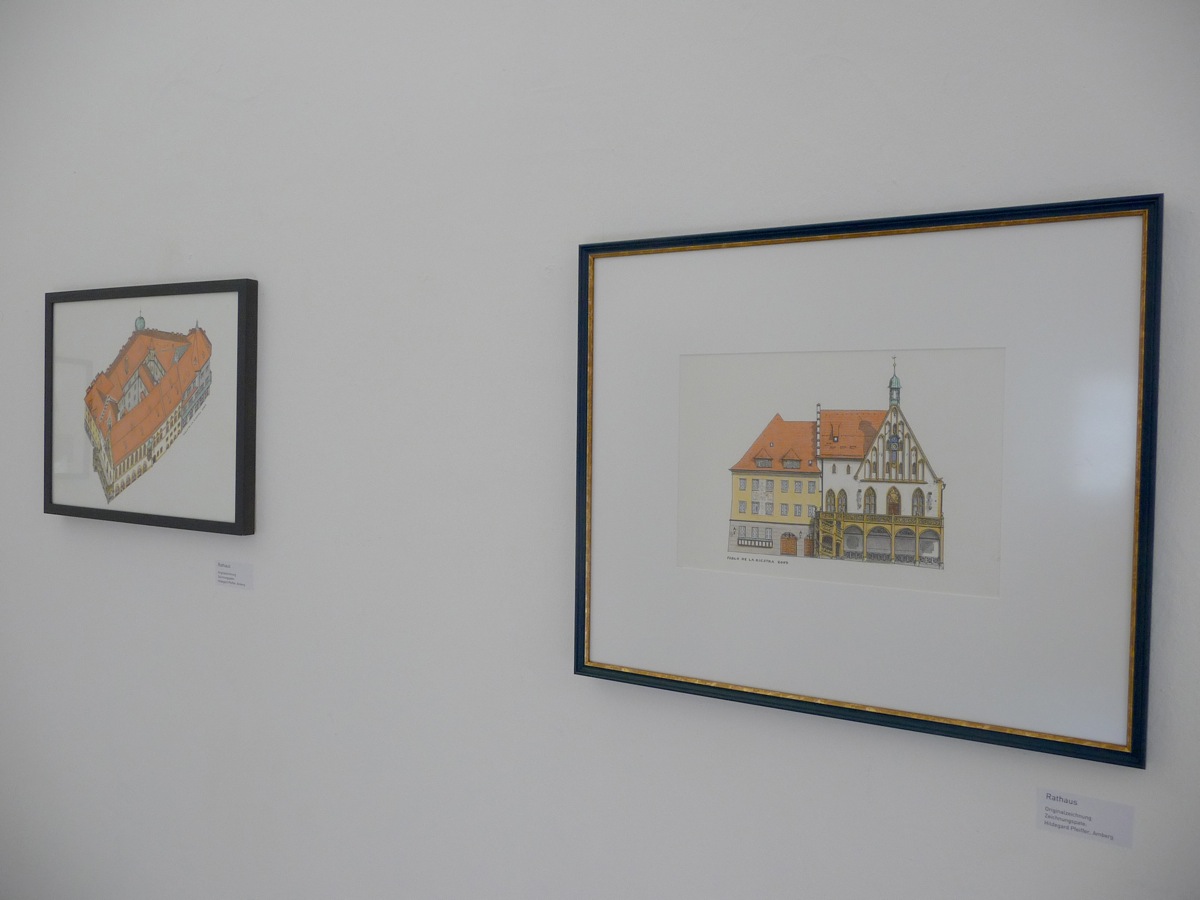 Durch die Unterstützung von Zeichnungspaten konnten insgesamt 45 Handzeichnungen von ausgewählten Amberger Ensembles und Einzelbauten erstellt werden. Zu sehen ist auch die große Stadtansicht der Amberger Altstadt, ermöglicht durch den Stadtmarketingverein Amberg und Klaus Herdegen. Die Originalzeichnungen werden erstmals öffentlich gezeigt. Außerdem wird die große Stadtzeichnung aus der Luft 7 x 4 Meter groß auf dem Boden liegend begehbar sein.