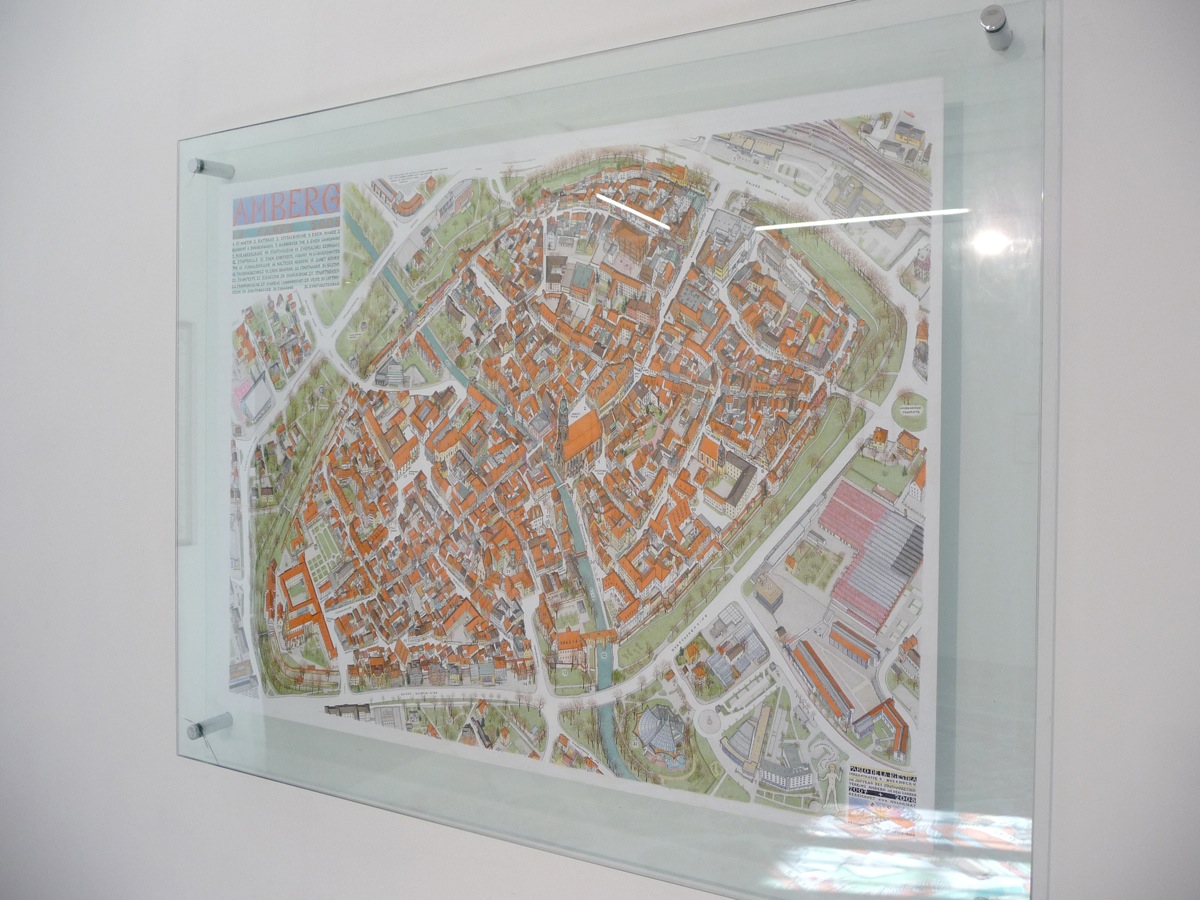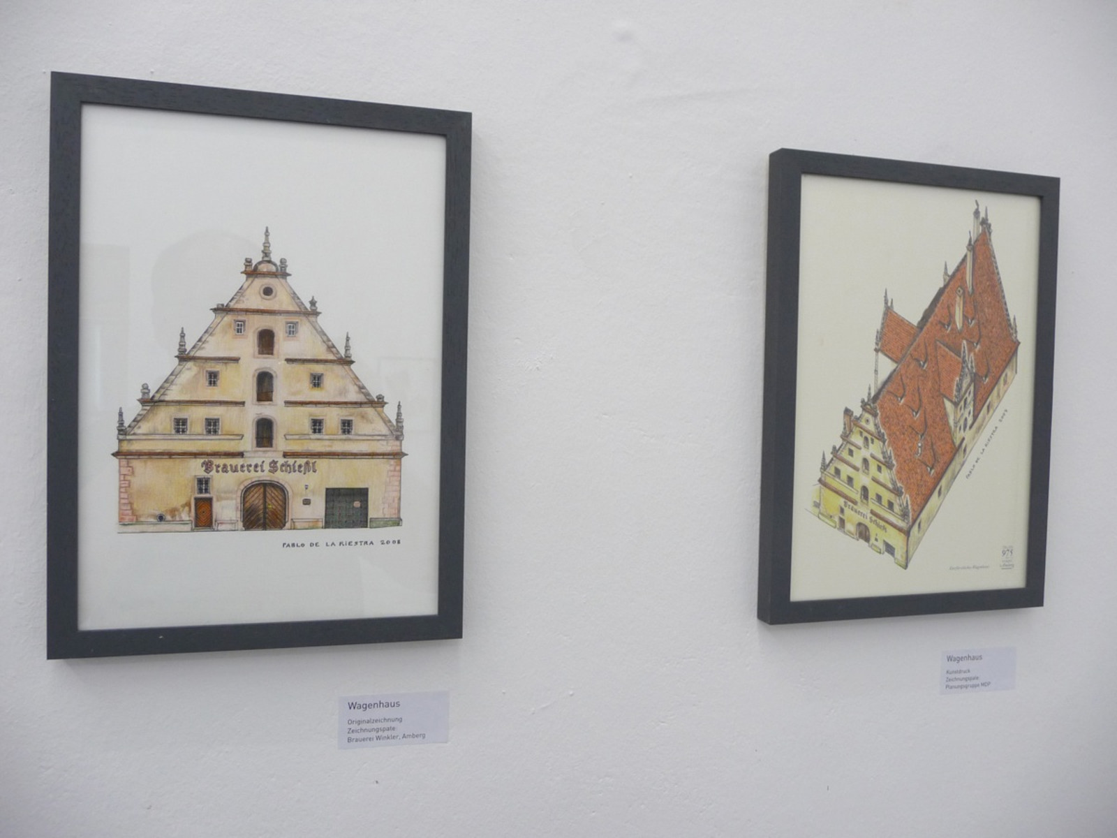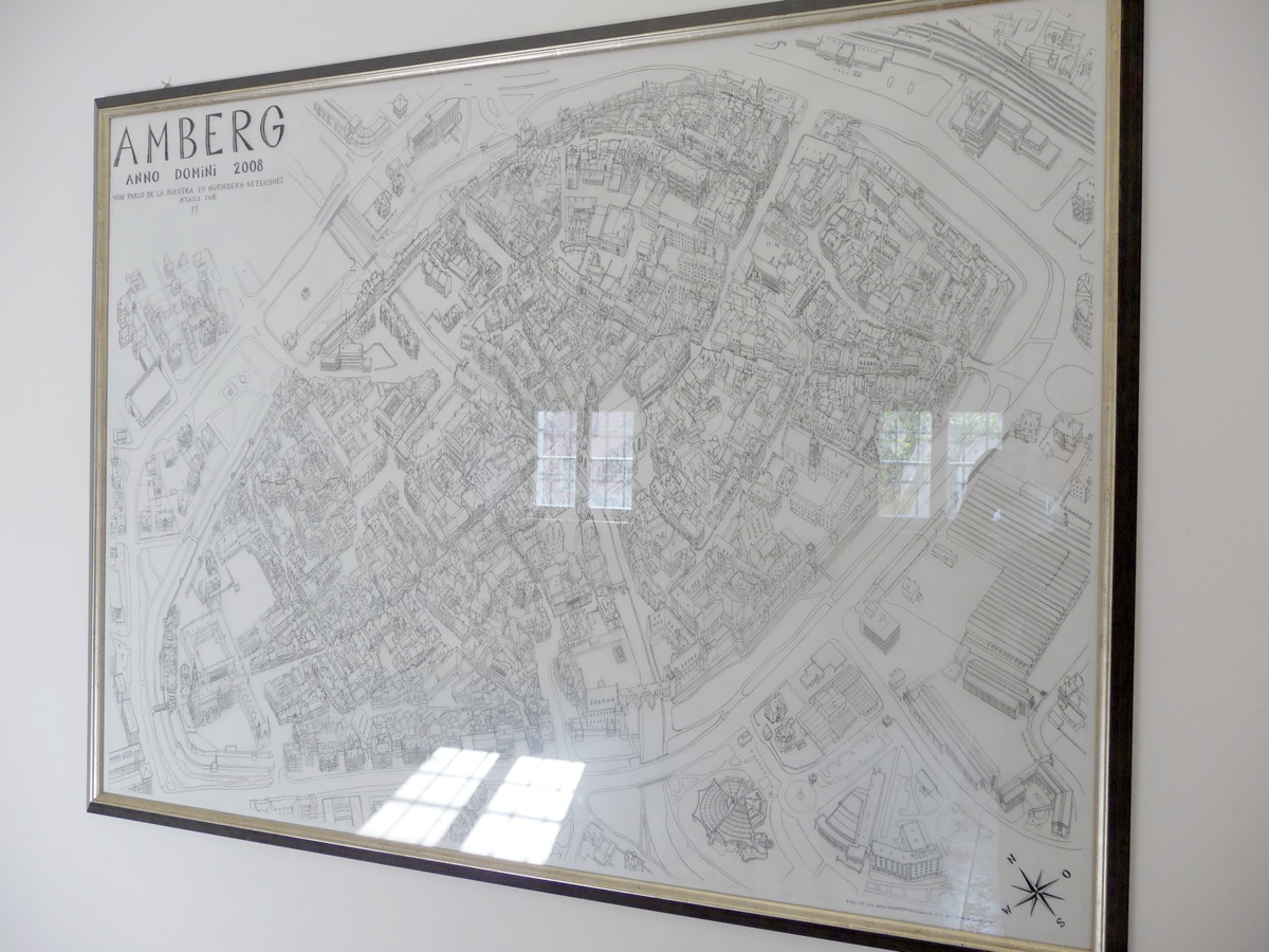 Durch die Unterstützung von Zeichnungspaten konnten insgesamt 45 Handzeichnungen von ausgewählten Amberger Ensembles und Einzelbauten erstellt werden. Zu sehen ist auch die große Stadtansicht der Amberger Altstadt, ermöglicht durch den Stadtmarketingverein Amberg und Klaus Herdegen. Die Originalzeichnungen werden erstmals öffentlich gezeigt. Außerdem wird die große Stadtzeichnung aus der Luft 7 x 4 Meter groß auf dem Boden liegend begehbar sein.