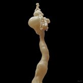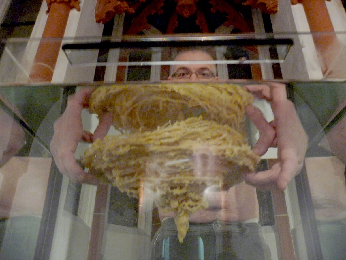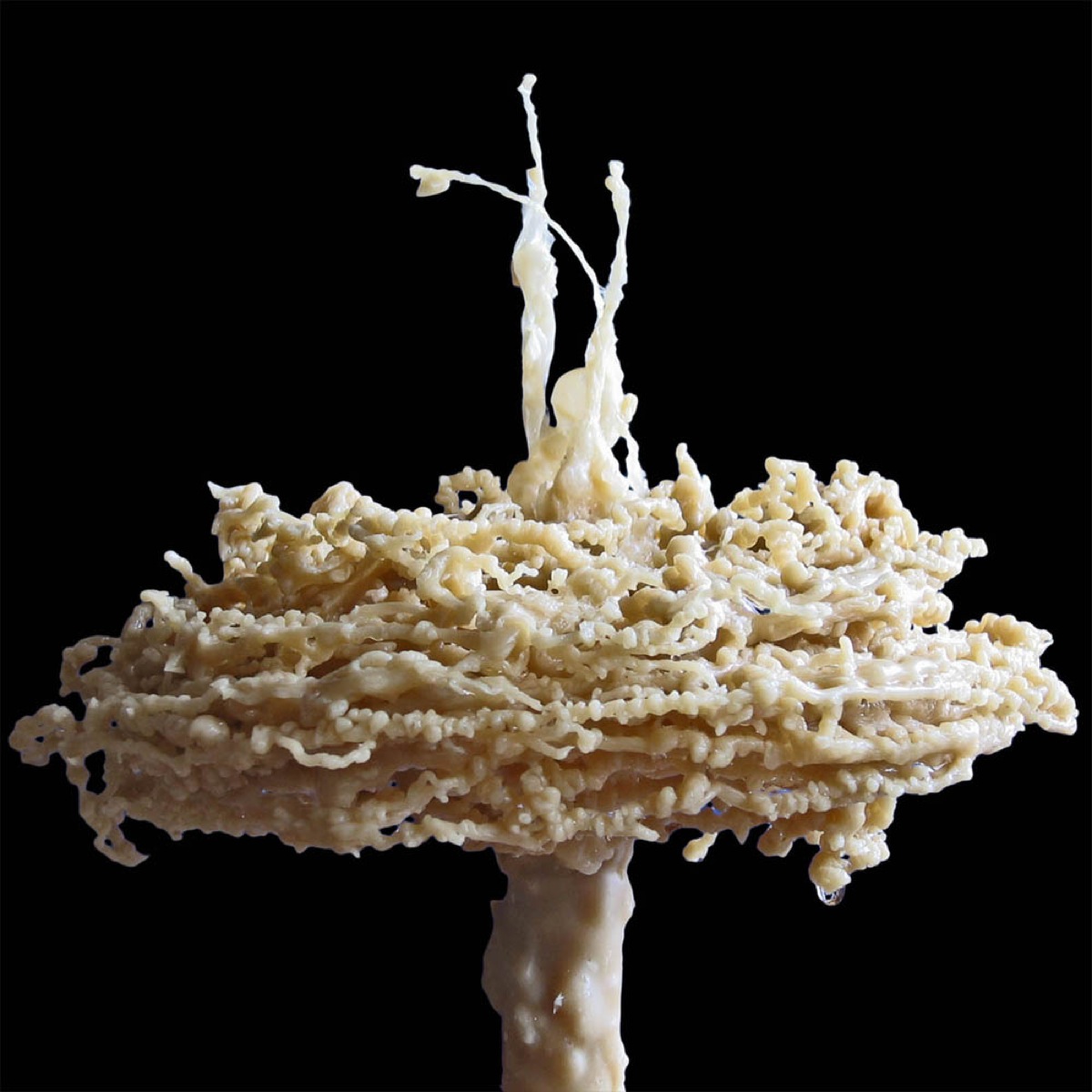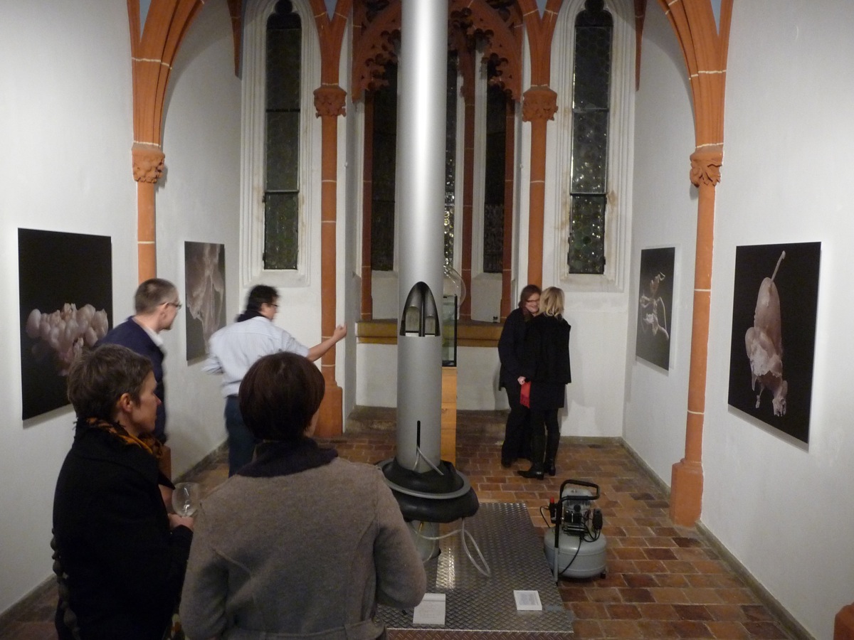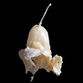 Werner Sperlich arbeitet unter dem Oberbegriff „Growing Systems“. Er hat dafür auch ein eigenes Label groWing syStems entwickelt. Wir fühlen uns an Pflanzzeit und Gärtnerei erinnert. Die Objekte, die hier heranwachsen, führen uns jedoch eher in eine Früh- oder Endzeitstimmung. Oder vielleicht in eine museale Zeitlosigkeit. Was man nicht unbedingt von der Haltbarkeit der abgebildeten „Modelle“ sagen kann. Was wir hier von dem Künstler Werner Sperlich sehen, sind eigentlich Portraits von Objekten mit kurzer „Halbwertszeit“. Denn die Objekte werden mit kochendem Bienenwachs aufgeblasen. Wasser dient dabei als „Form“ und „steuert“ während der Entstehung das skurrile Aussehen der Objekte. Ihre Temperaturbeständigkeit liegt ungefähr im Bereich von 0 bis +50 Grad (Also ganz ähnlich wie botanische Strukturen). Sie sind sehr druckempfindlich, gelten zwar nicht als feuergefährlich aber als leicht brennbar.