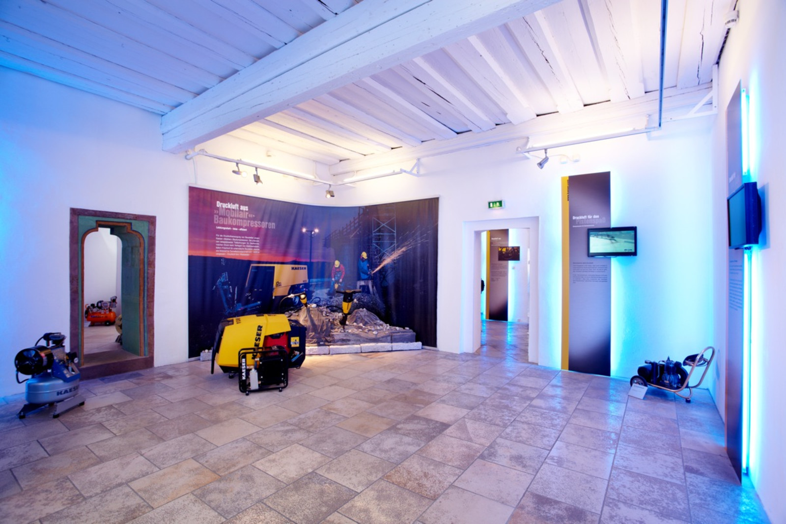 Denn in einer sehenswerten Sonderausstellung lässt sich die Drucklufterzeugung hautnah erleben: „Antike“ und moderne Kompressoranlagen des Coburger Druckluft-Systemanbieters Kaeser Kompressoren sind ebenso zu sehen wie interessante Fotos und Videos unterschiedlicher Druckluft-Anwendungen.