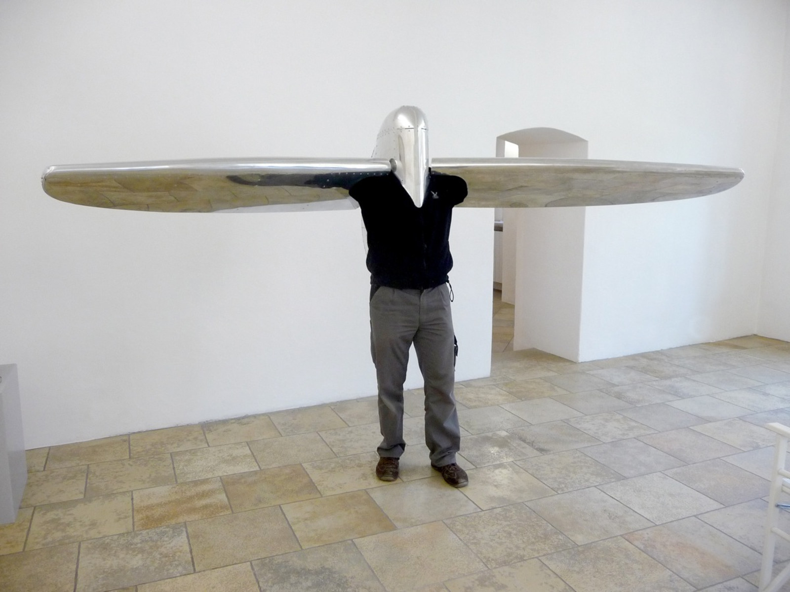Eine Spiel zwischen Schwere und Leichtigkeit, Massivem und Zerbrechlichem, zwischen Struktur und Transparenz. In vielen Arbeiten des Bildhauers wird eine Affinität zur Fliegerei sichtbar und es überrascht wenig zu erfahren, dass er leidenschaftlicher Drachenflieger ist.