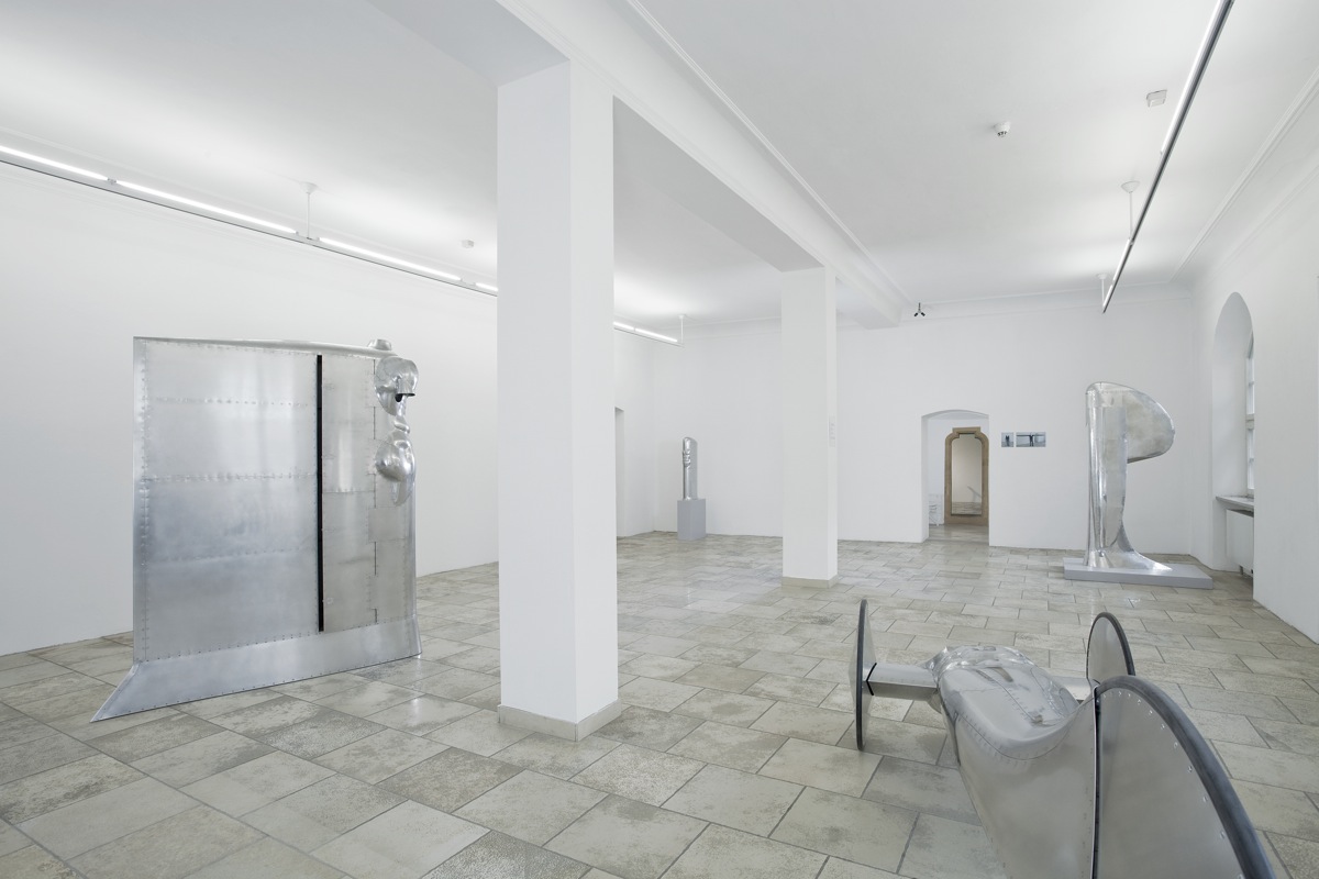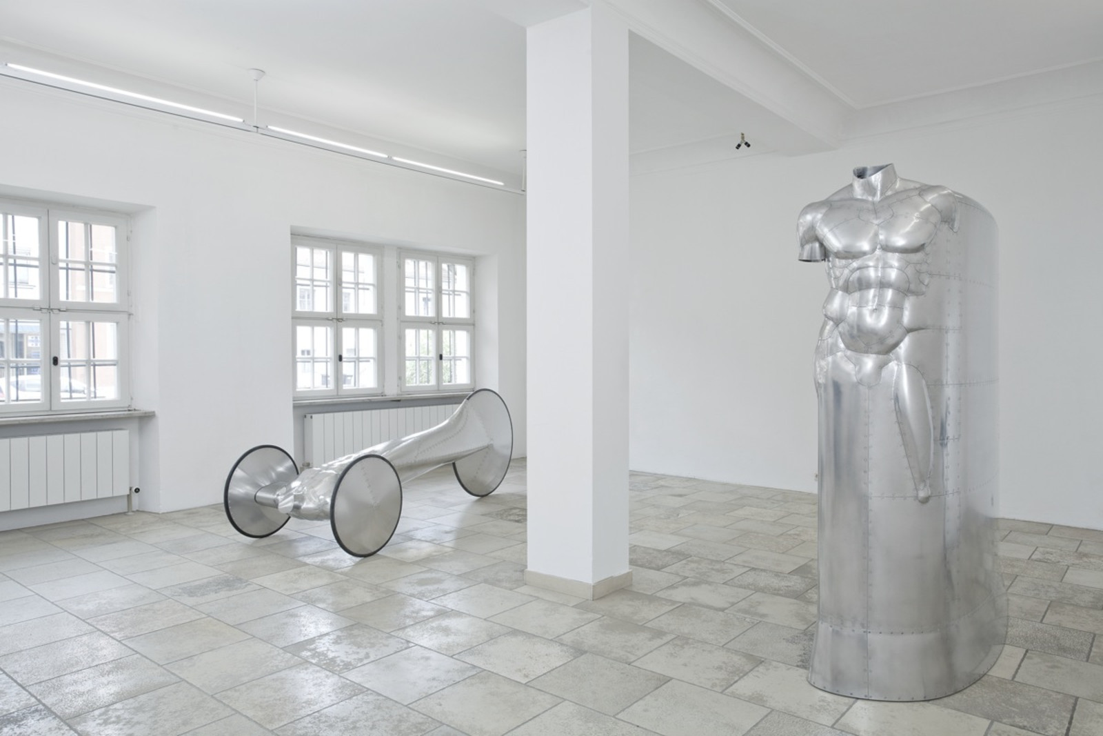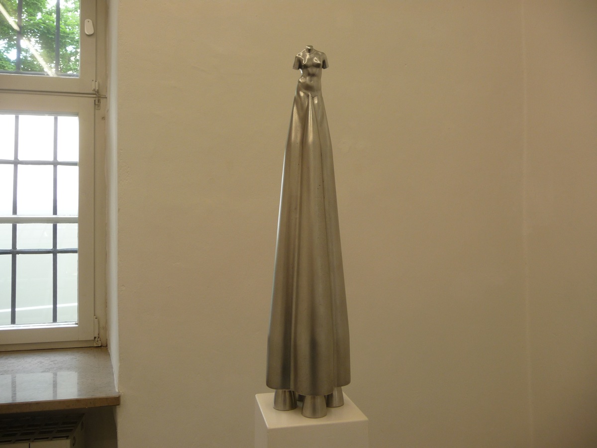 In seinem Atelier am Münchner Königsplatz entstehen die futuristisch anmutenden Gebilde – jedoch etwas an ihnen weist auch weit zurück in die Vergangenheit. Die griechisch/römischen Statuen der Glyptothek sind eine wichtige Quelle der Inspiration und zum Teil direktes Vorbild dieser Menschmaschinen. Aus Aluminiumplatten geformt und wie im Flugzeugbau vernietet und verschraubt, fließen Torsi und aerodynamische Formen organisch ineinander über. Stromlinie und Aluminium, Form und Material der Geschwindigkeit des mobilen Zeitalters, Ausdruck einer rasanten Entwicklung, die die Menschheit in kürzester Zeit von der Pferdekutsche ins Düsen- und Computerzeitalter katapultiert hat. Bergmann’s Skulpturen sind Metaphern dieser immensen Beschleunigung in ihrer ganzen Zwiespältigkeit.