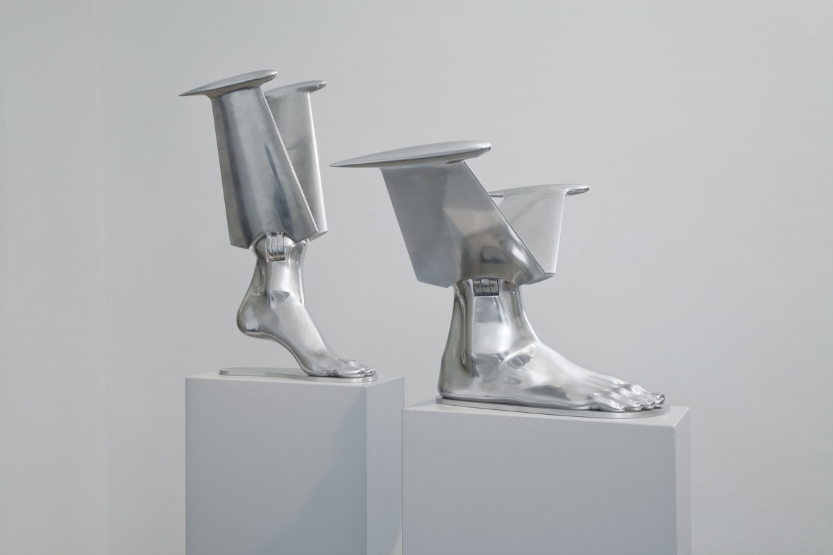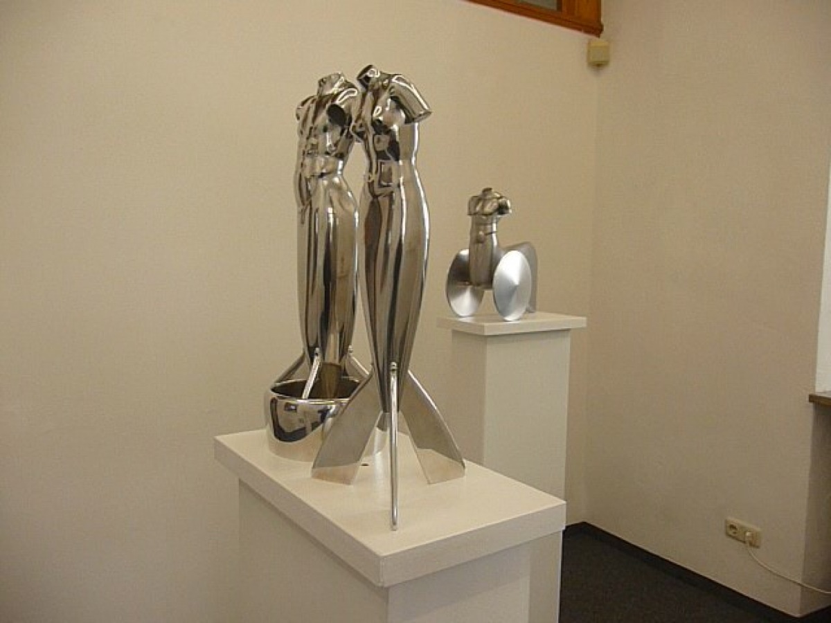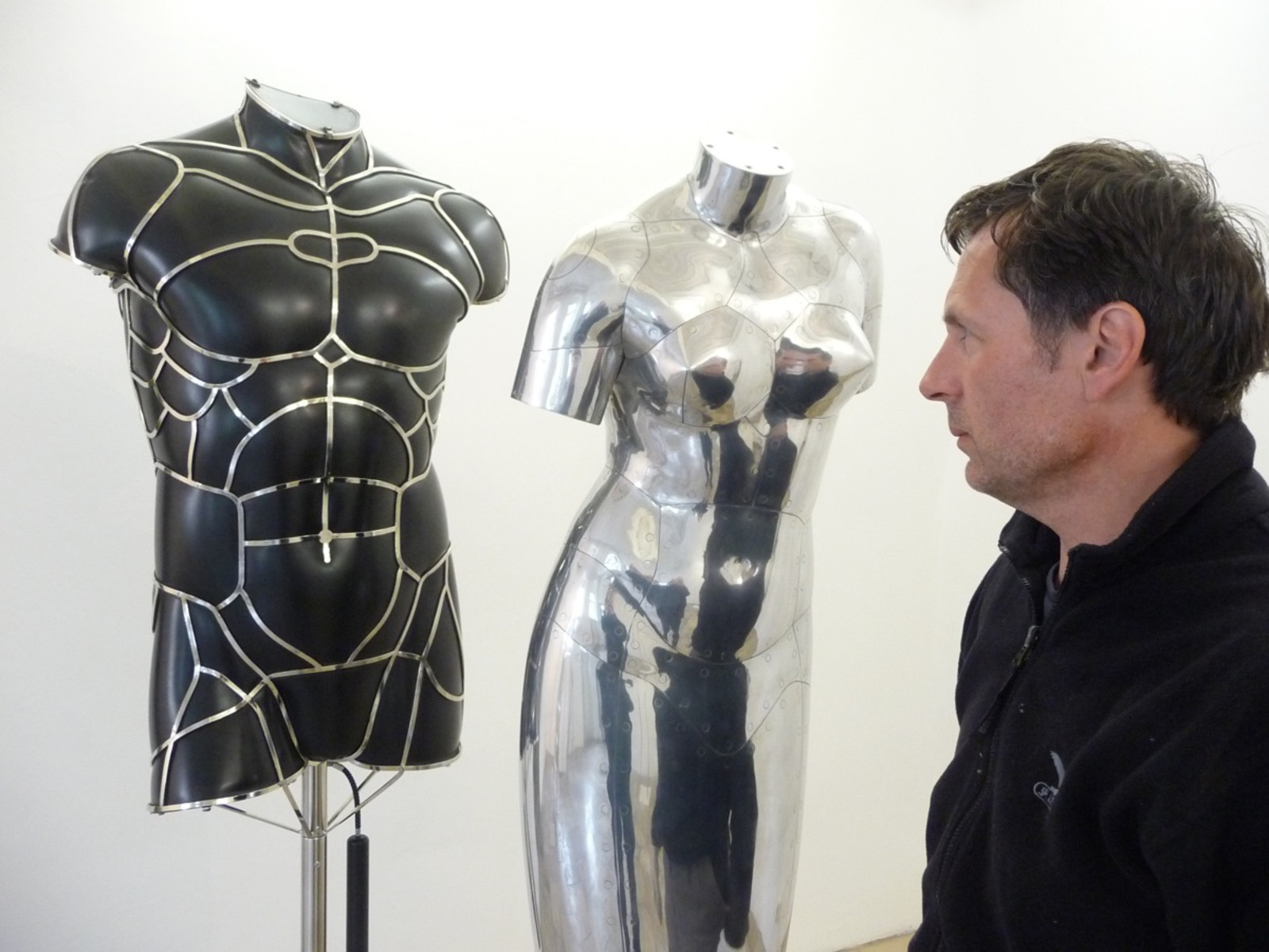 Halb Mensch, halb Maschine – das sind die silberglänzenden Mischwesen des Bildhauers Christoph Bergmann (geb. 1959).