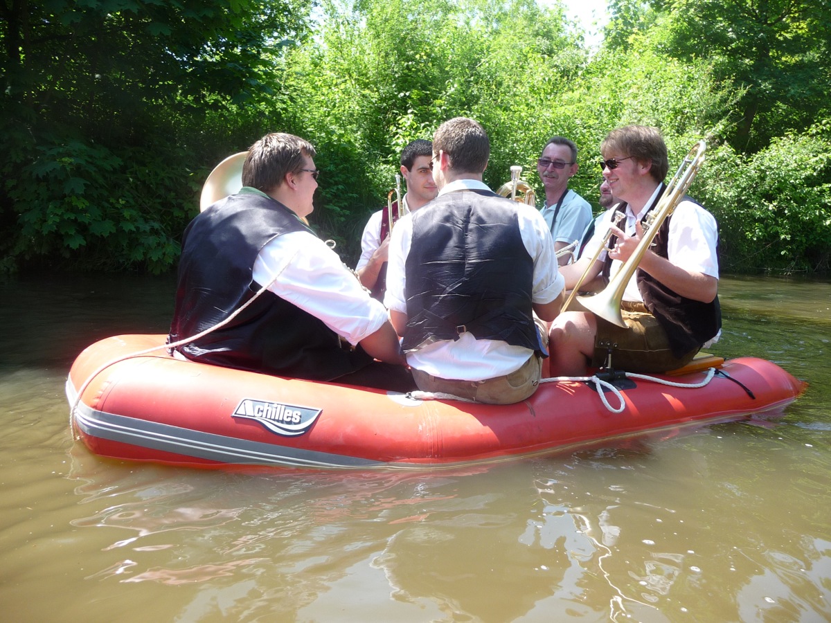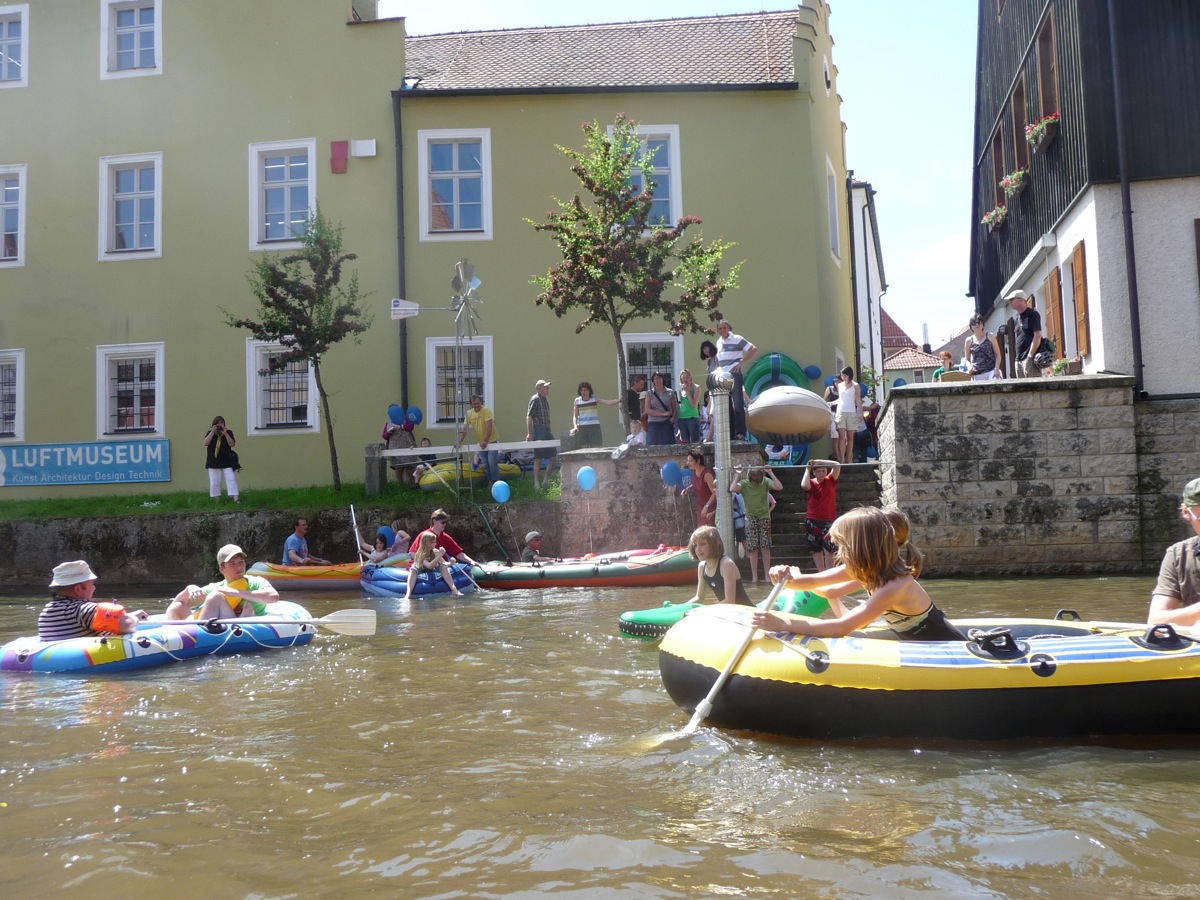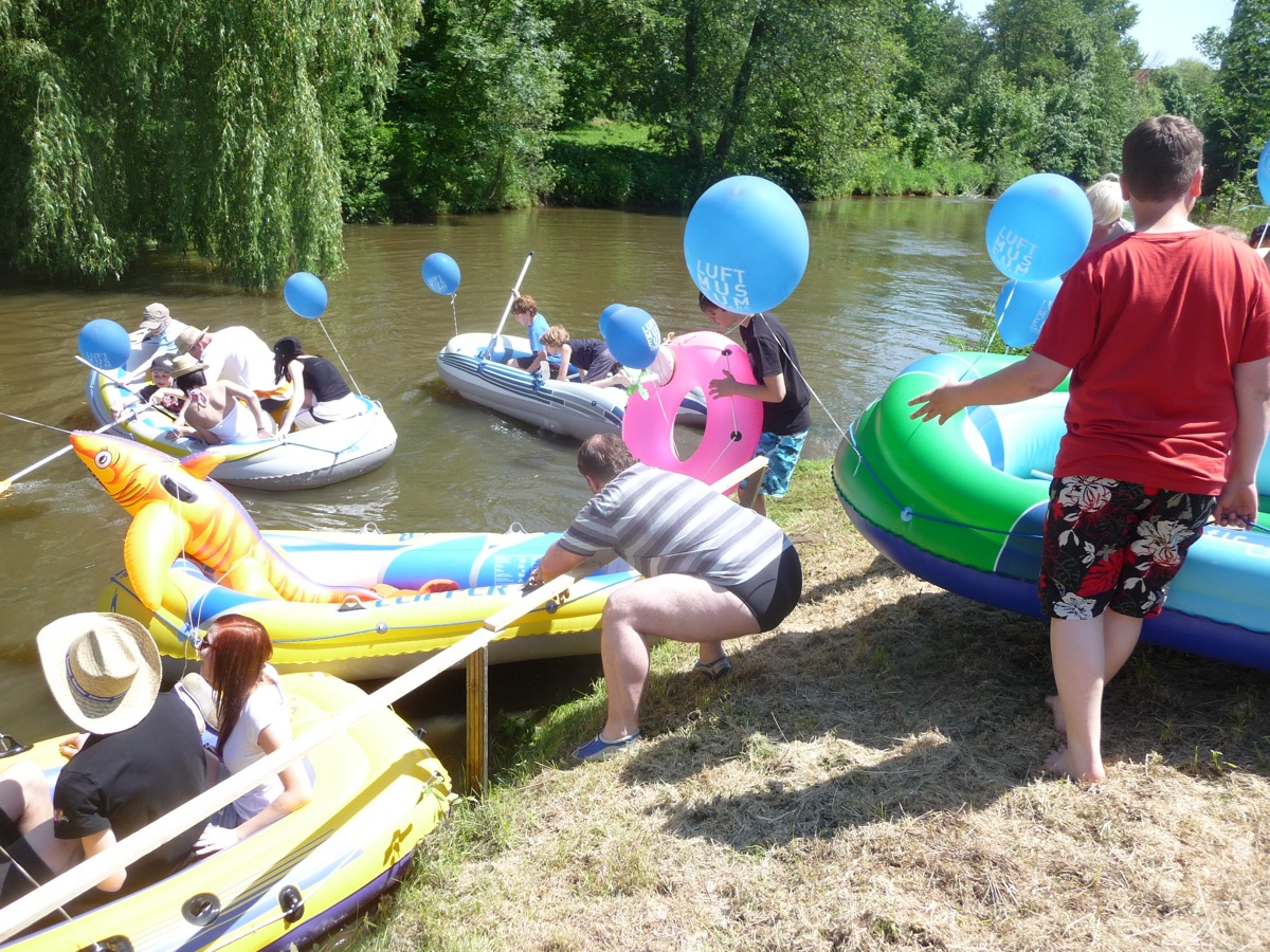 Jeder kann mitmachen, sofern er ein Luftboot (Schlauchboot) oder aufblasbares Schwimmgerät hat. Gemeinsame Fahrt (kein Rennen!) in Richtung Luftmuseum in Begleitung von Blasmusik. Weitere Blasmusiker sind willkommen mitzumachen (Speis und Trank frei)