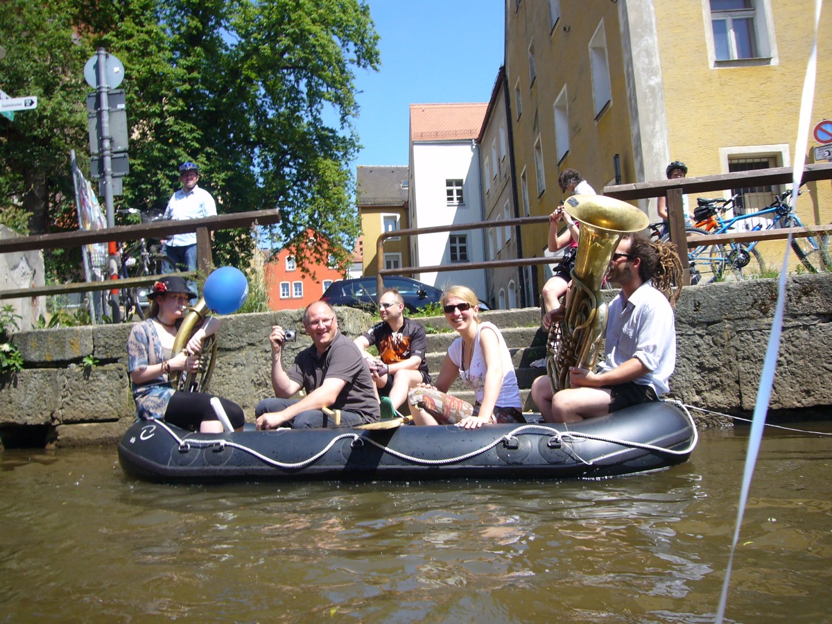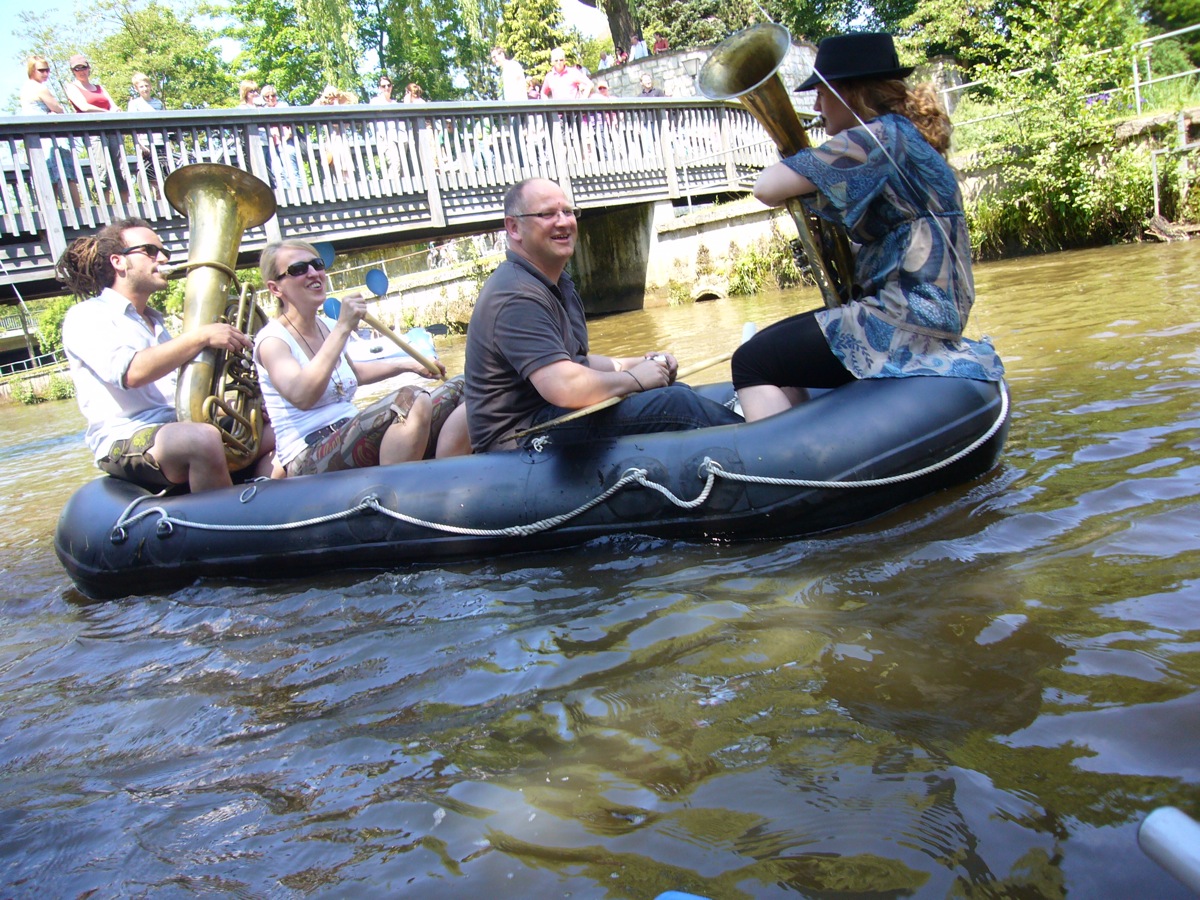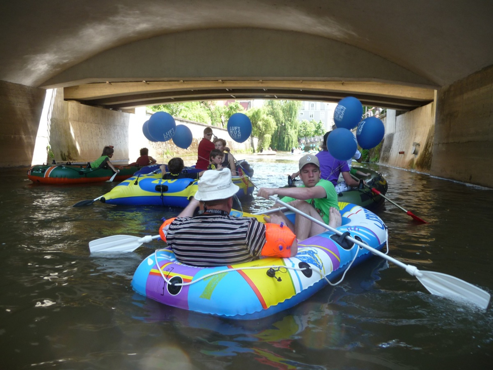 Jeder kann mitmachen, sofern er ein Luftboot (Schlauchboot) oder aufblasbares Schwimmgerät hat. Gemeinsame Fahrt (kein Rennen!) in Richtung Luftmuseum in Begleitung von Blasmusik. Weitere Blasmusiker sind willkommen mitzumachen (Speis und Trank frei)
