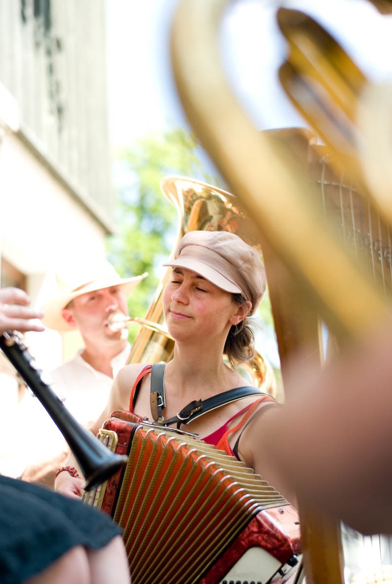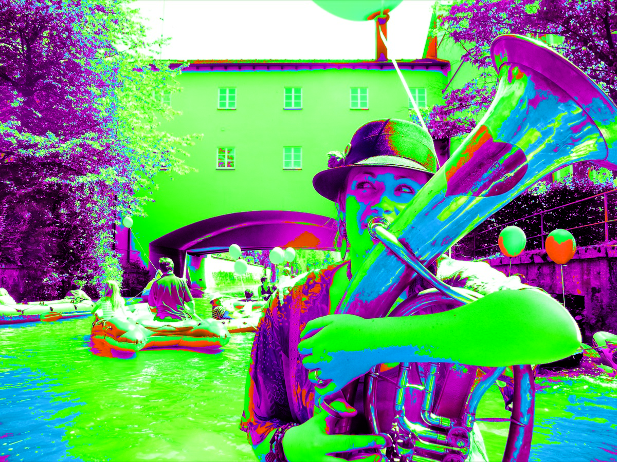 - In den Booten und auf den Brücken gibt es junge Blasmusik mit