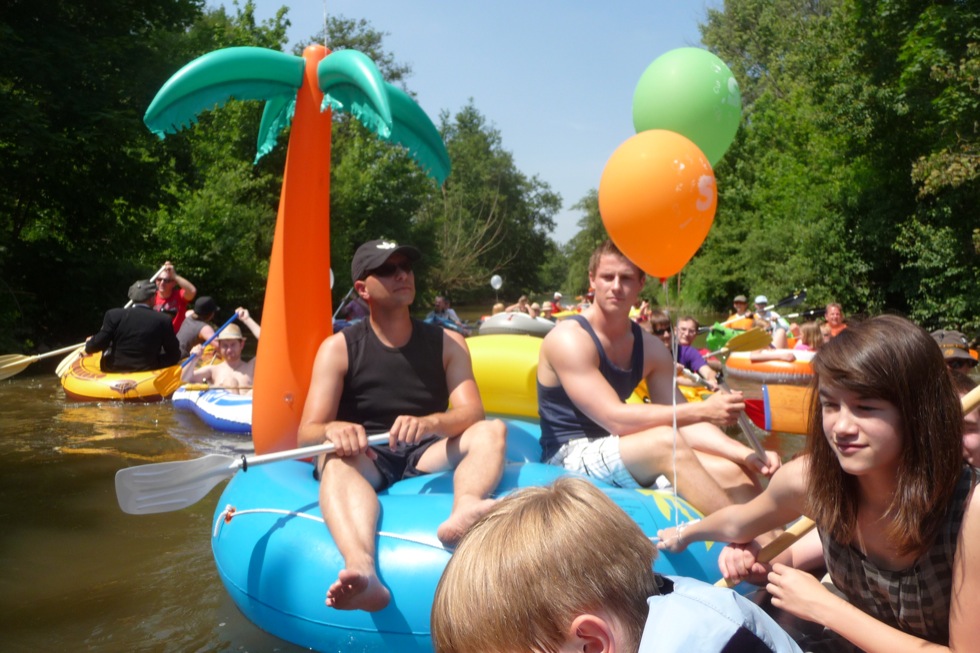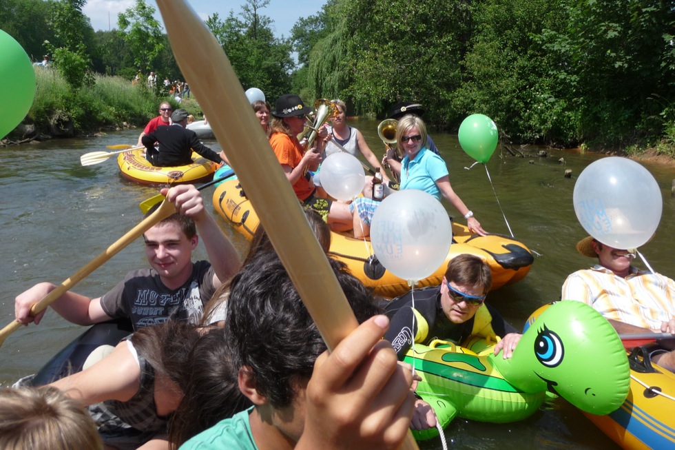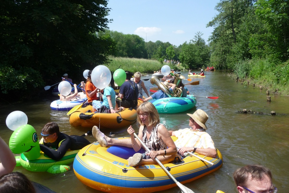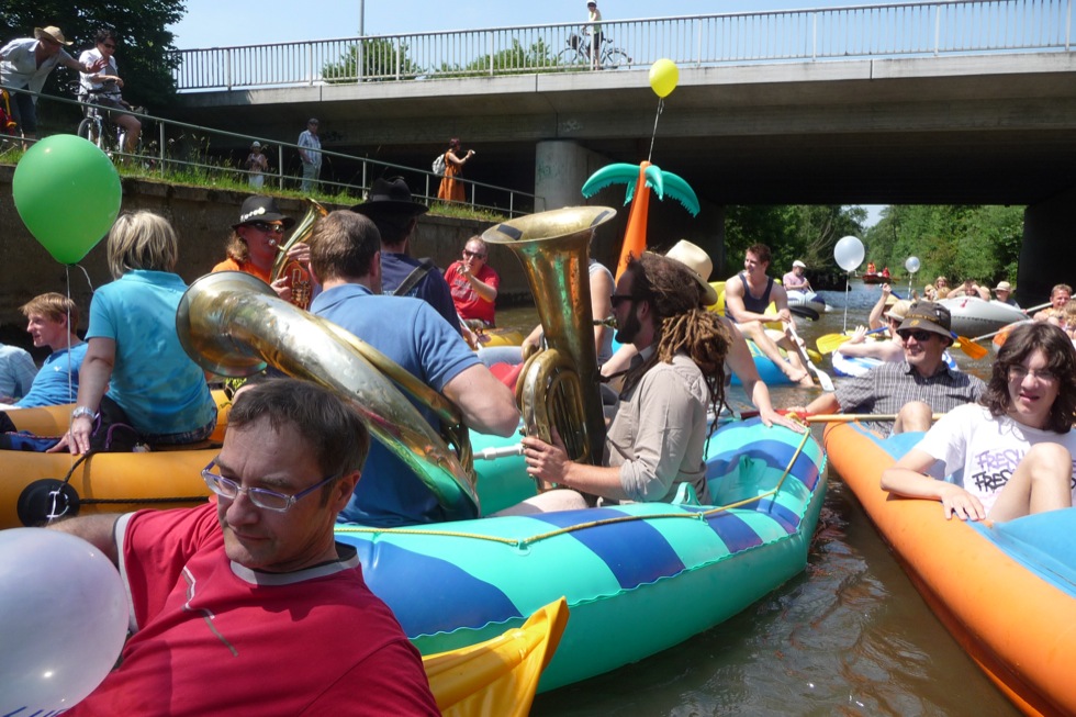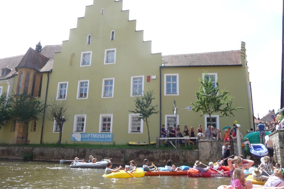 Jeder kann mitmachen, sofern er ein Luftboot (Schlauchboot) oder aufblasbares Schwimmgerät hat. Gemeinsame Fahrt (kein Rennen!) in Richtung Luftmuseum in Begleitung von Blasmusik. Weitere Blasmusiker sind willkommen mitzumachen (Speis und Trank frei). Begleitet wird die Luftbootfahrt wieder von der DLRG Amberg