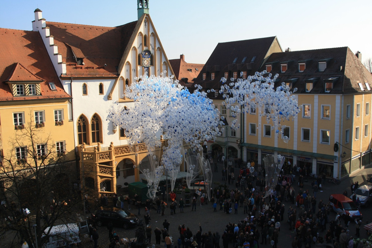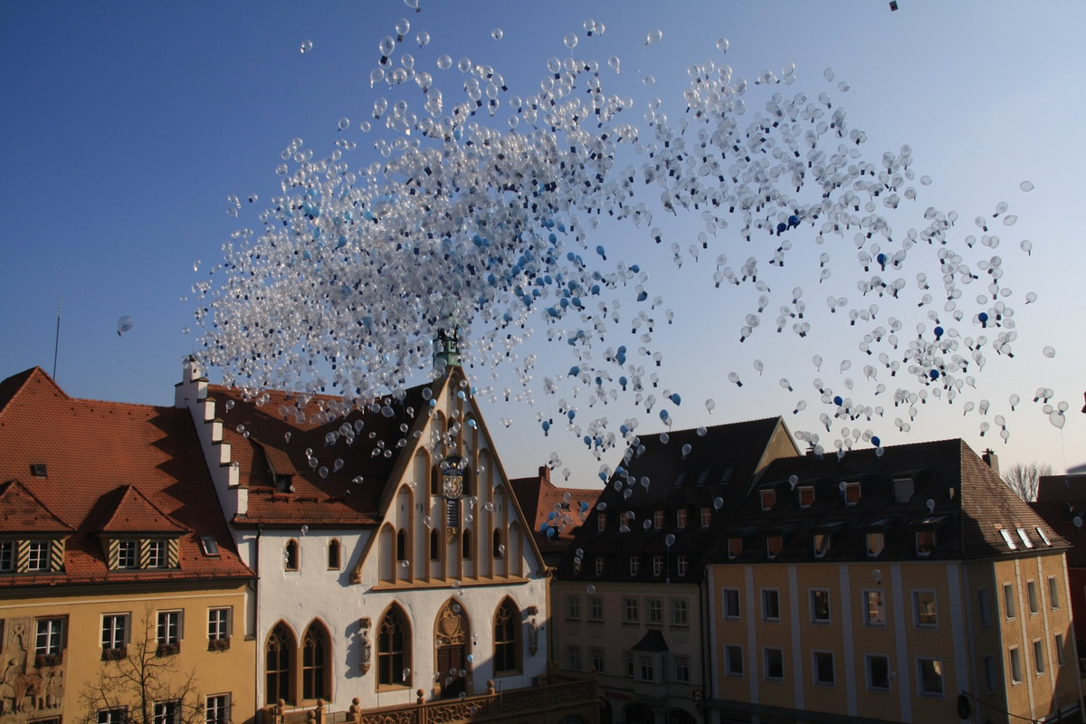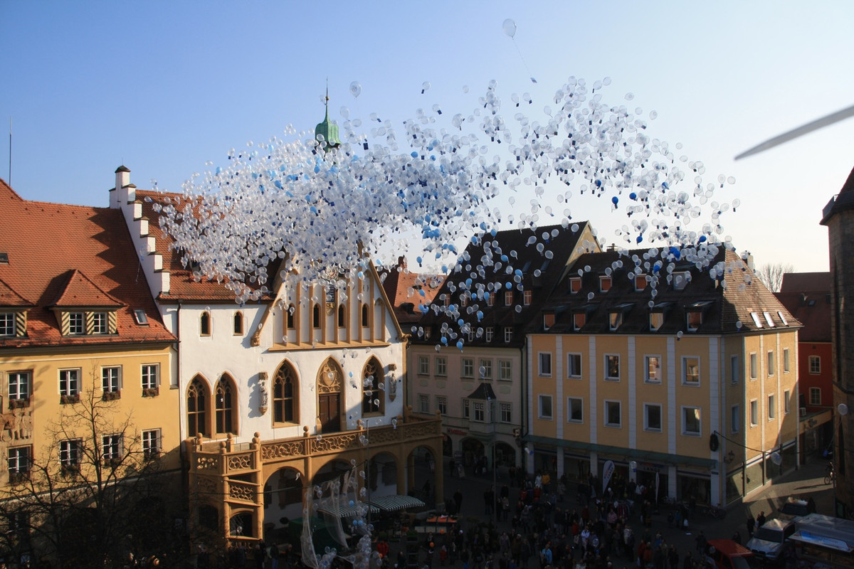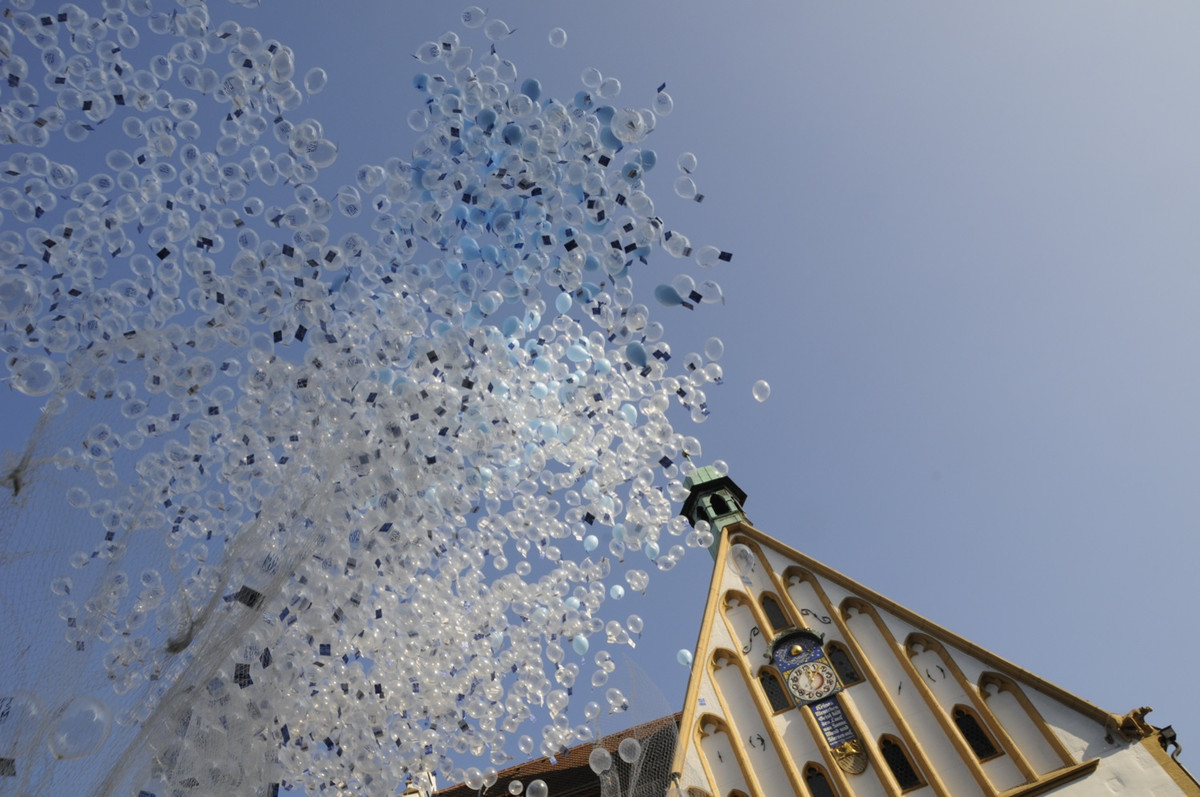 Anläßlich der Wiedereröffnung des Luftmuseums nach dem Brandschaden stiegen auf dem Marktplatz in Amberg 5000 Luftballone in den Himmel. An jedem Ballon hing eine Luftpostkarte, die dem Finder freien Eintritt ins Luftmuseum gewährt.