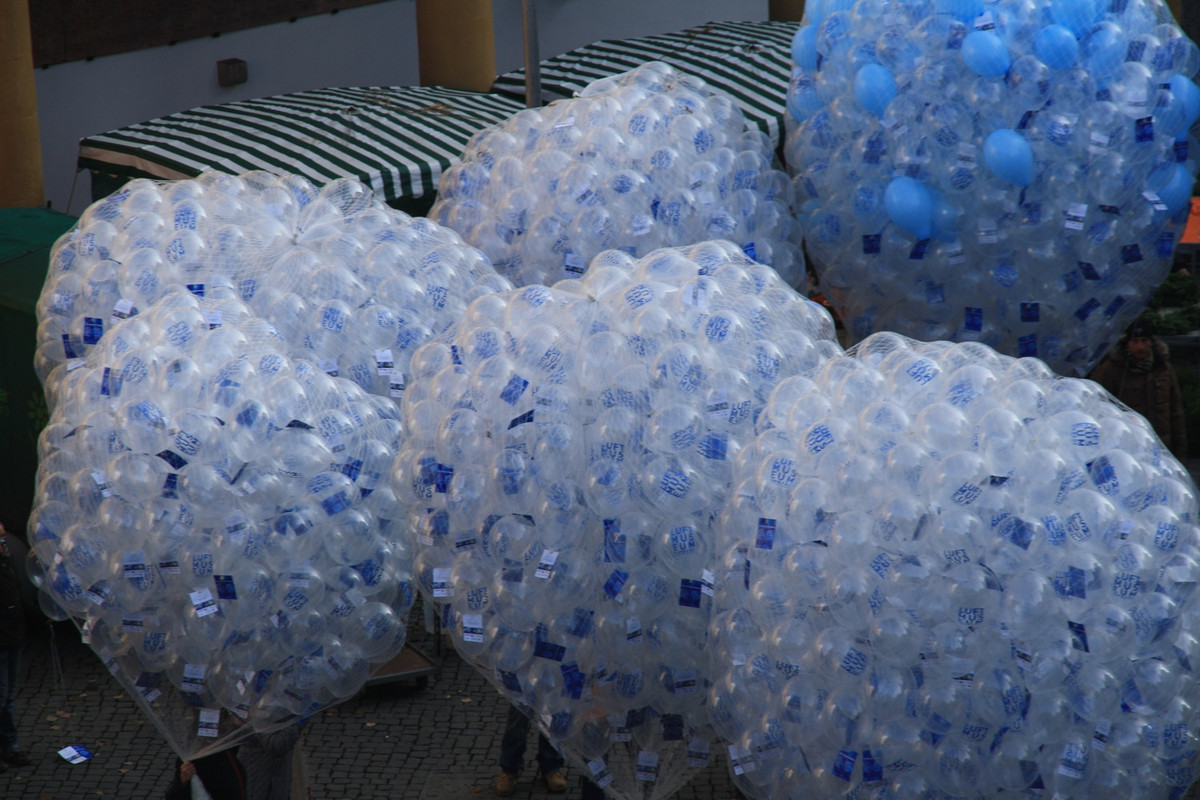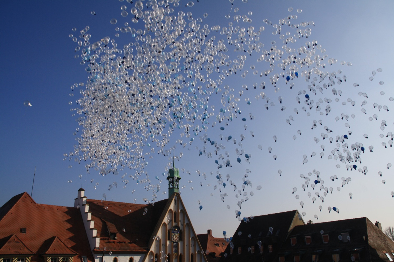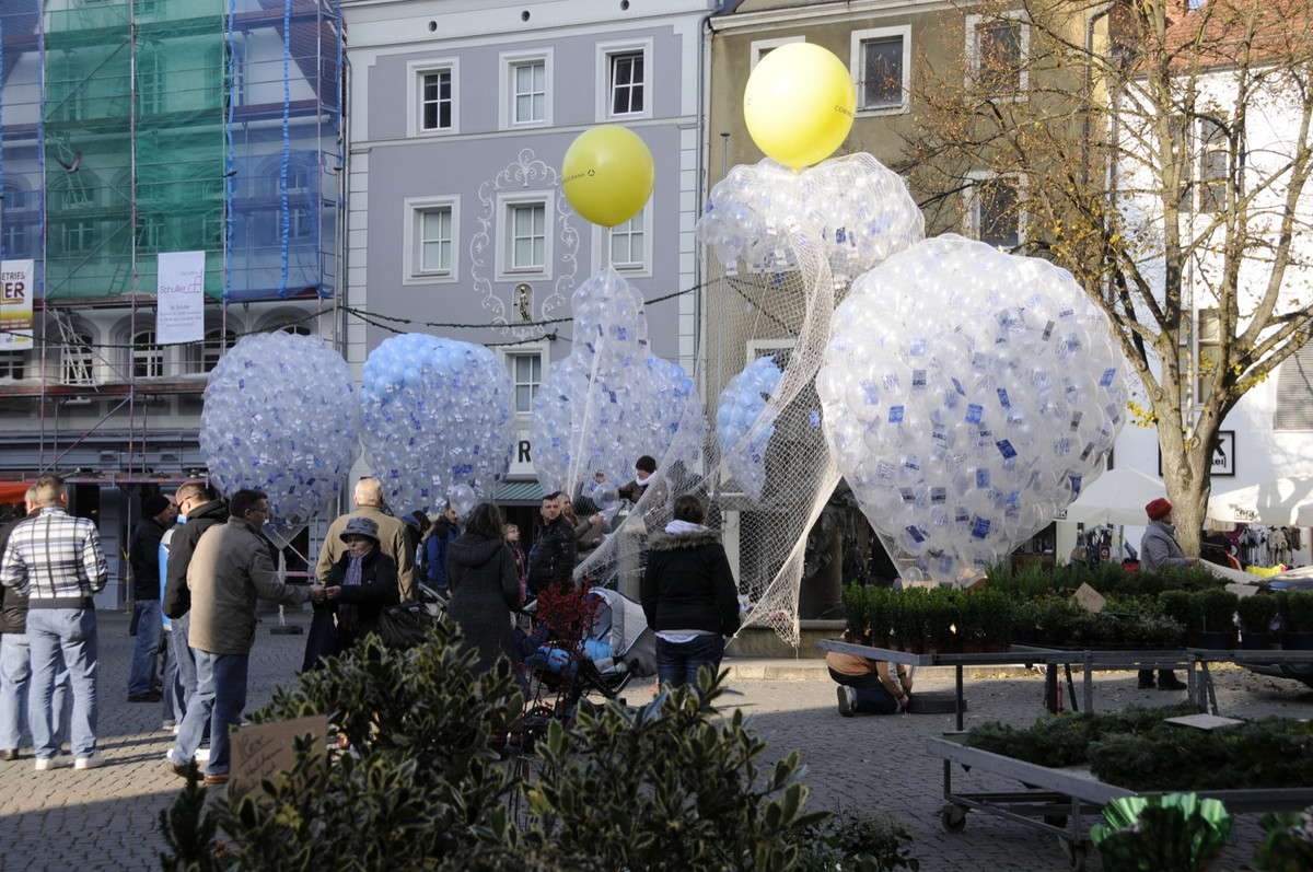 Anläßlich der Wiedereröffnung des Luftmuseums nach dem Brandschaden stiegen auf dem Marktplatz in Amberg 5000 Luftballone in den Himmel. An jedem Ballon hing eine Luftpostkarte, die dem Finder freien Eintritt ins Luftmuseum gewährt.